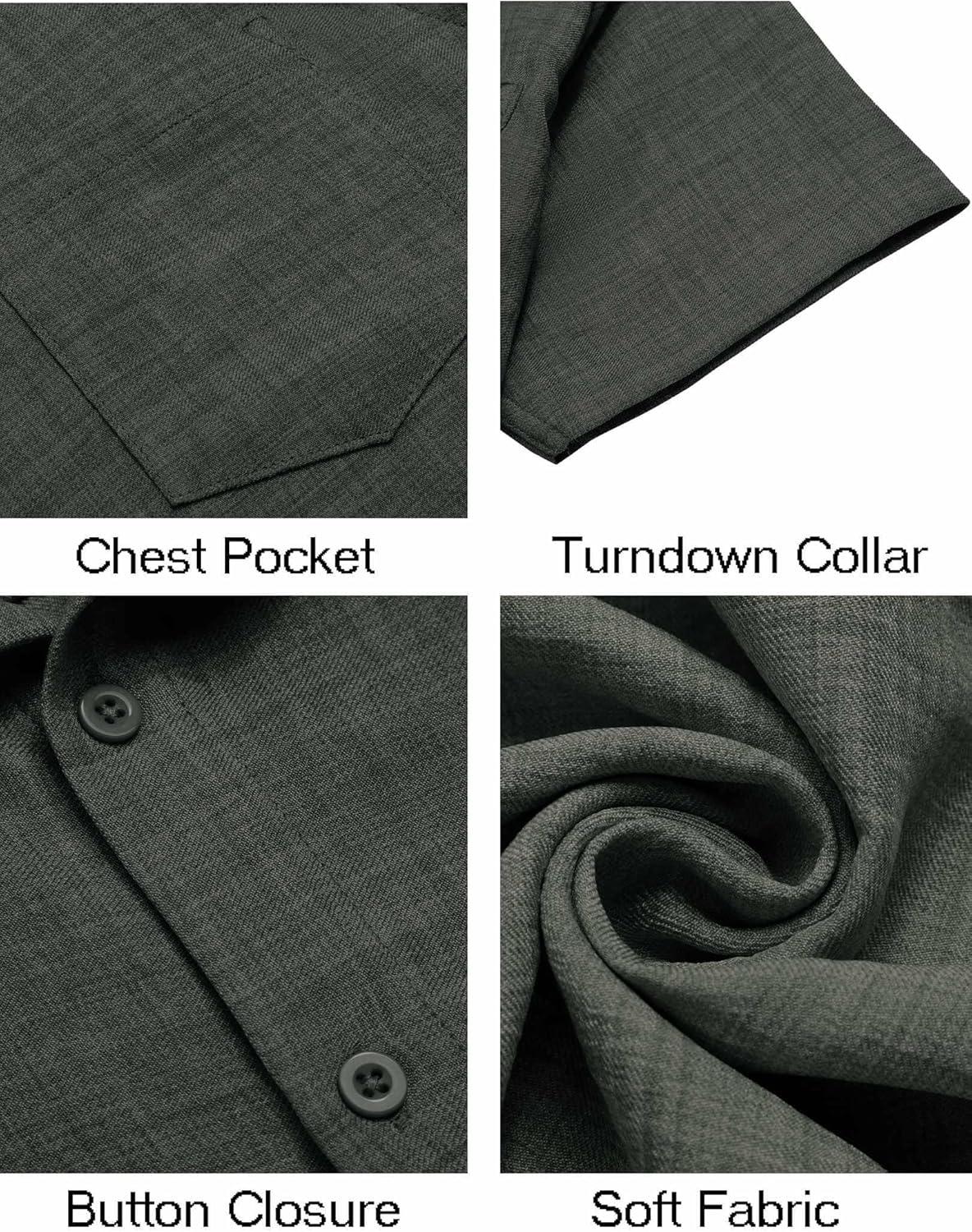 COOFANDY Mens Button Down Short Sleeve Shirt Casual Shirts Summer Beach Textured Shirts with Pocket(Dark Grey)