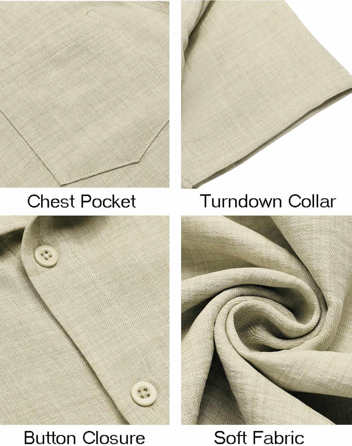 imageCOOFANDY Mens Button Down Short Sleeve Shirt Casual Shirts Summer Beach Textured Shirts with PocketLight Khaki
