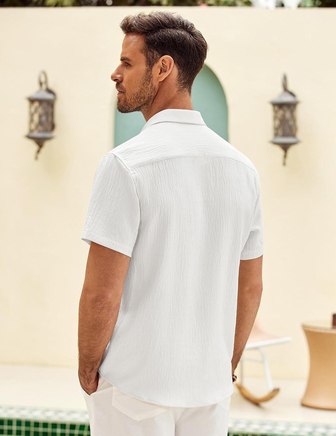 COOFANDY Mens Button Down Short Sleeve Shirt Casual Shirts Summer Beach Textured Shirts with Pocket(White)