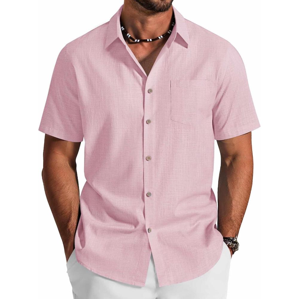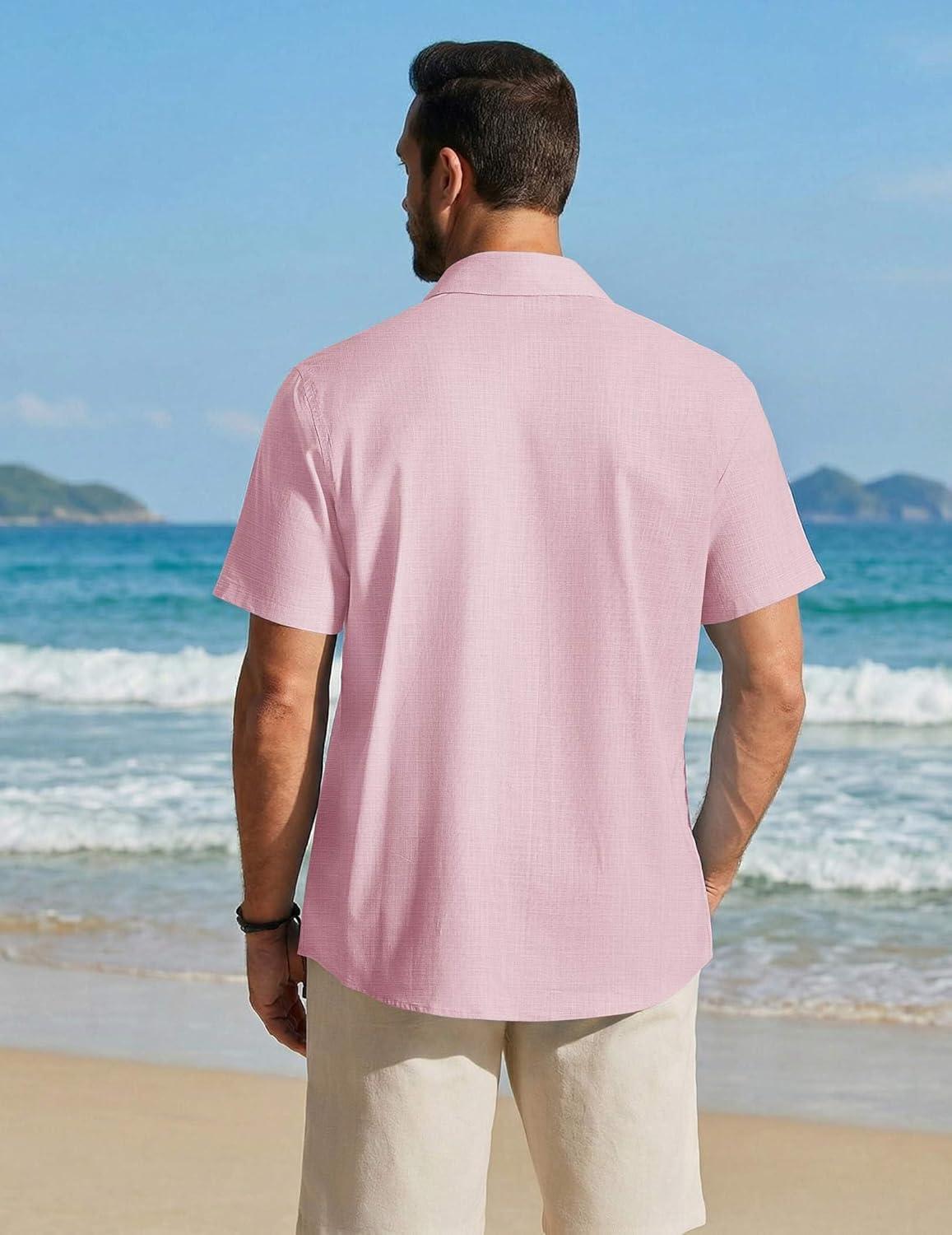 COOFANDY Men's Button Down Short Sleeve Shirt Cotton Casual Summer Shirts Textured Beach Vacation Shirts for Men(Icy Pink)