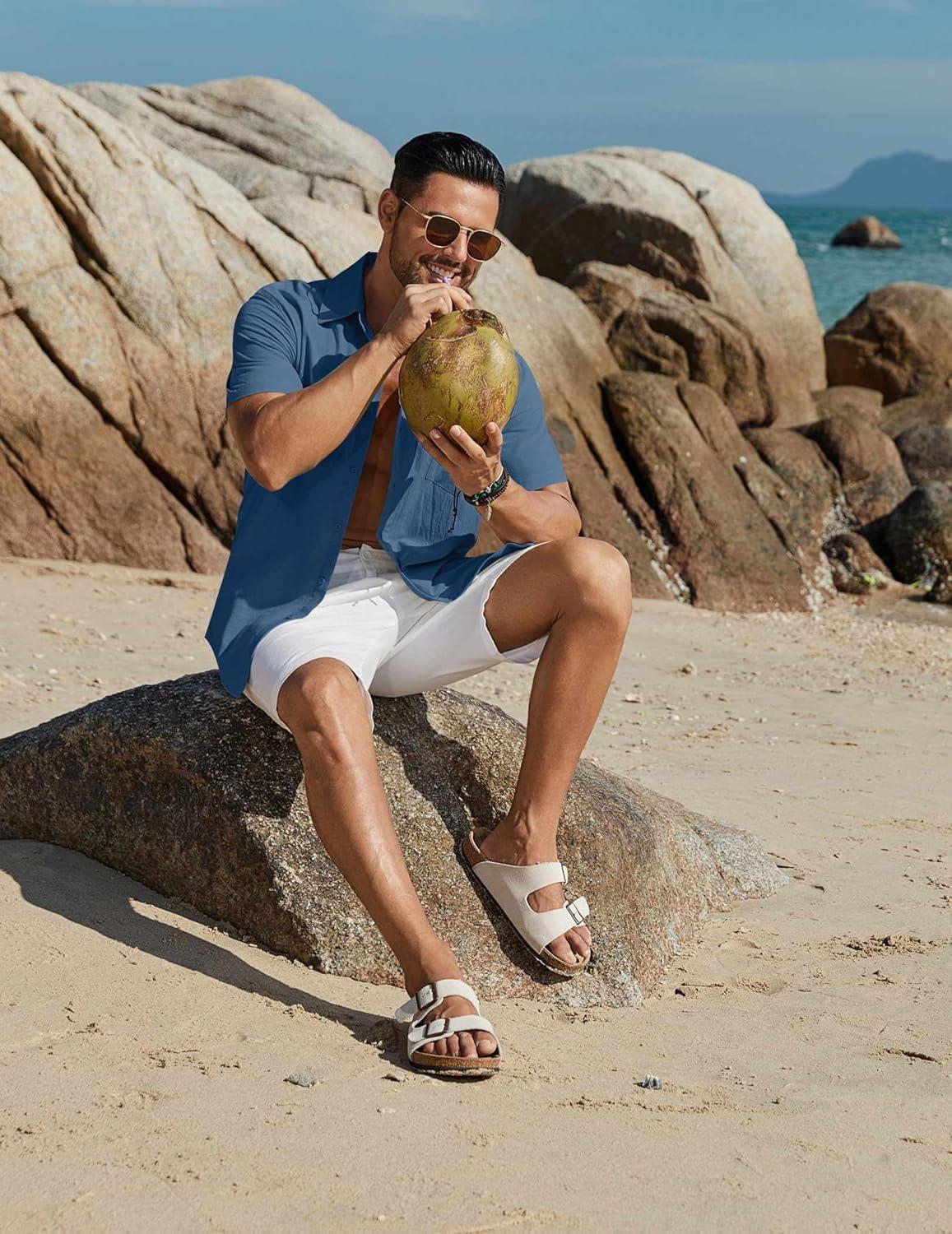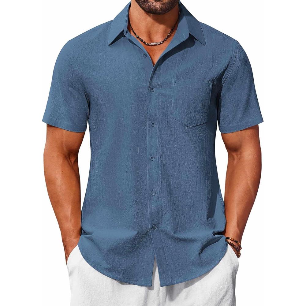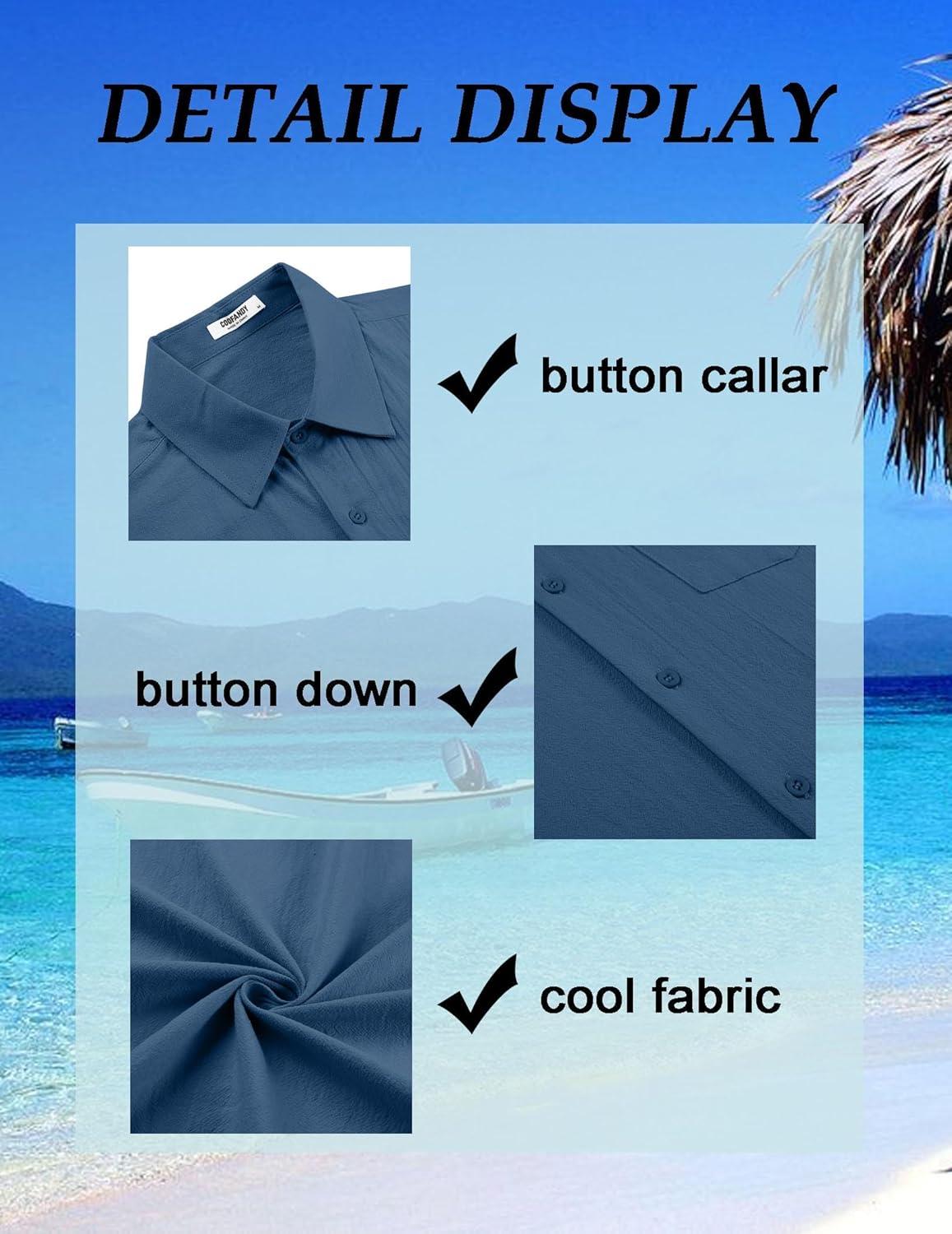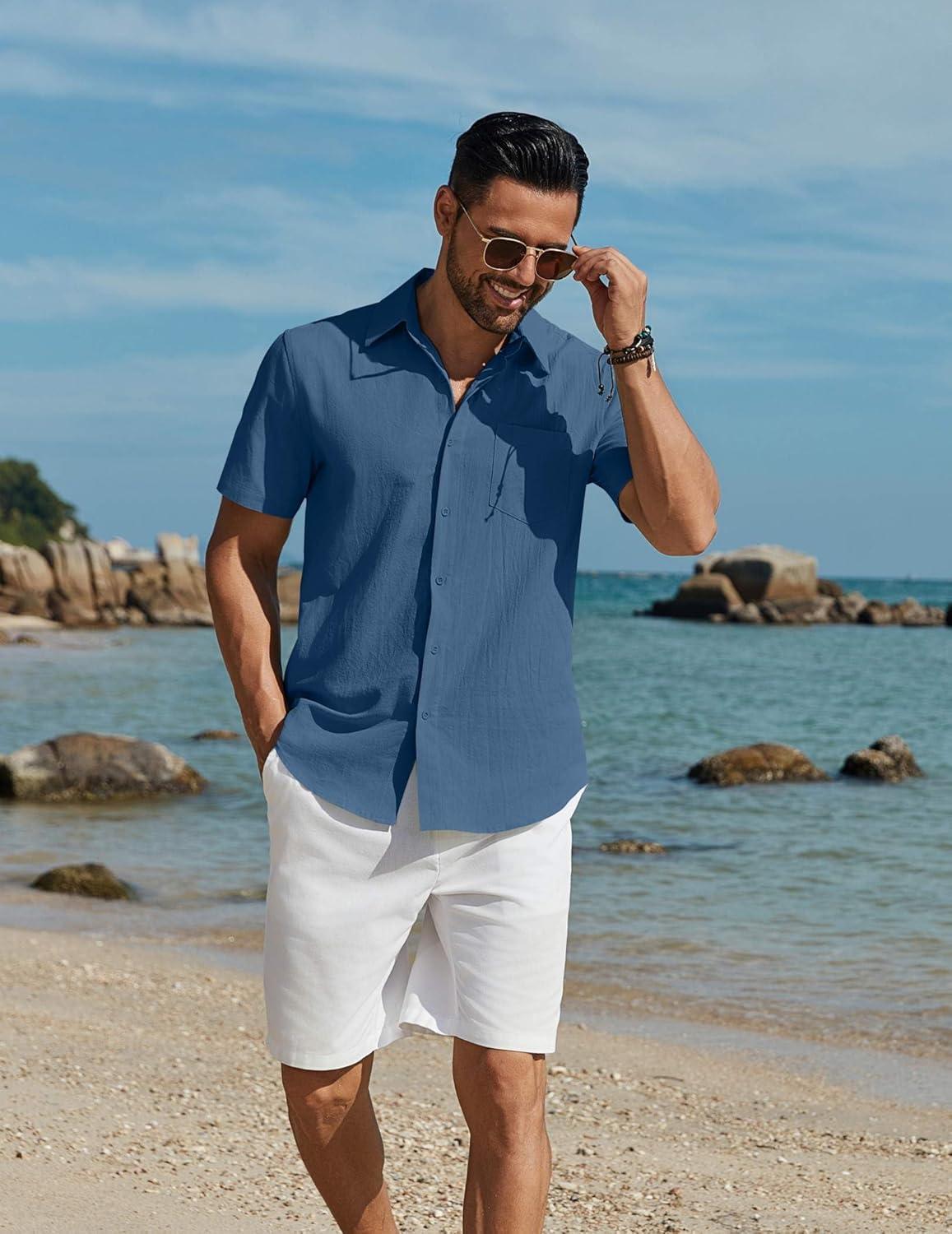 COOFANDY Mens Button Down Short Sleeve Shirts Casual Cotton Shirts Summer Beach Shirt with Pocket(Denim Blue)