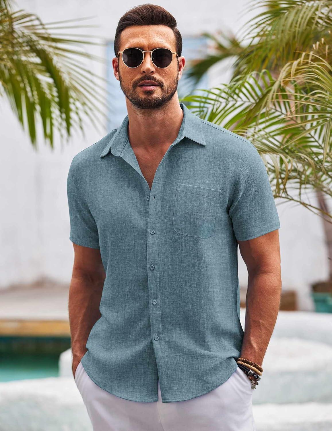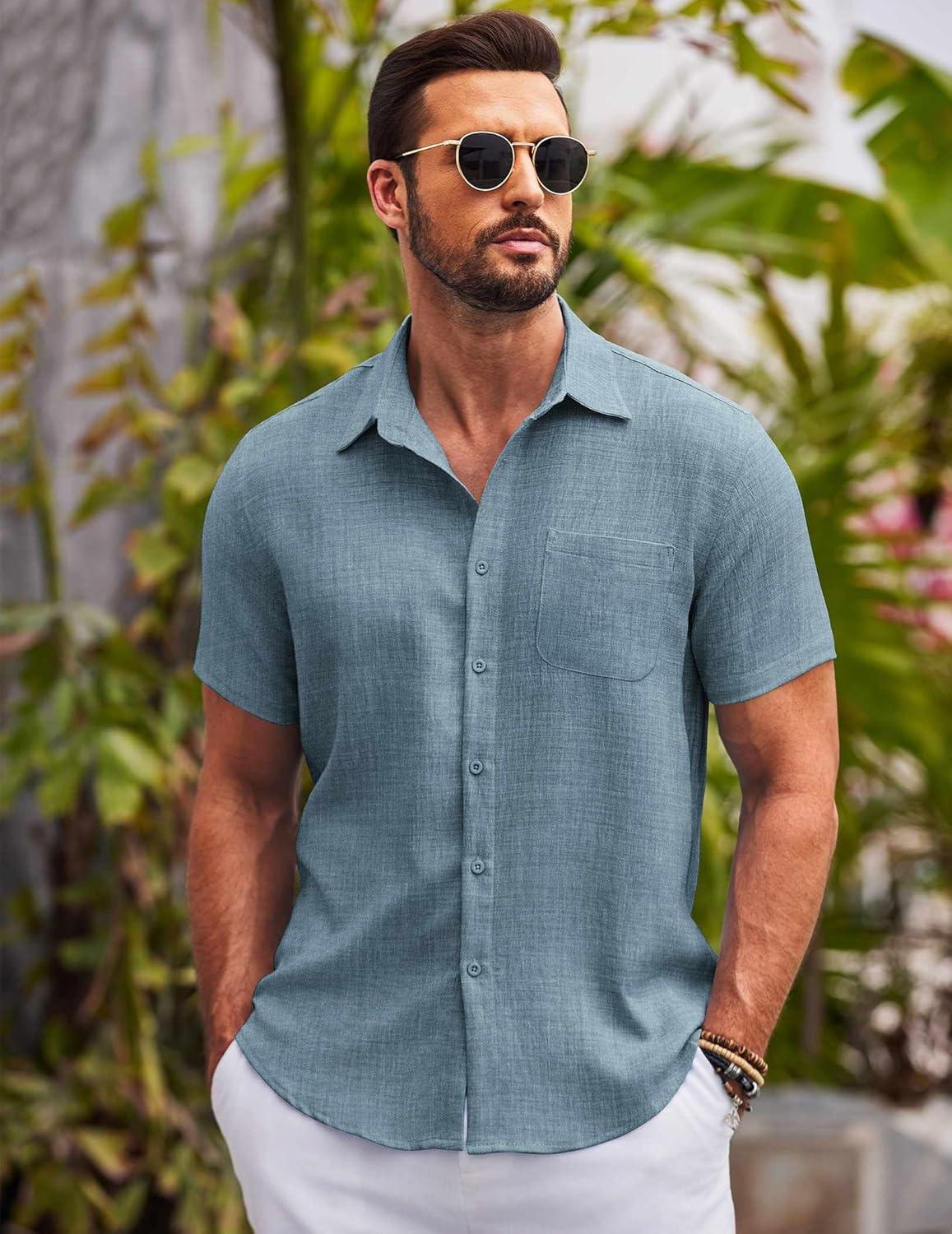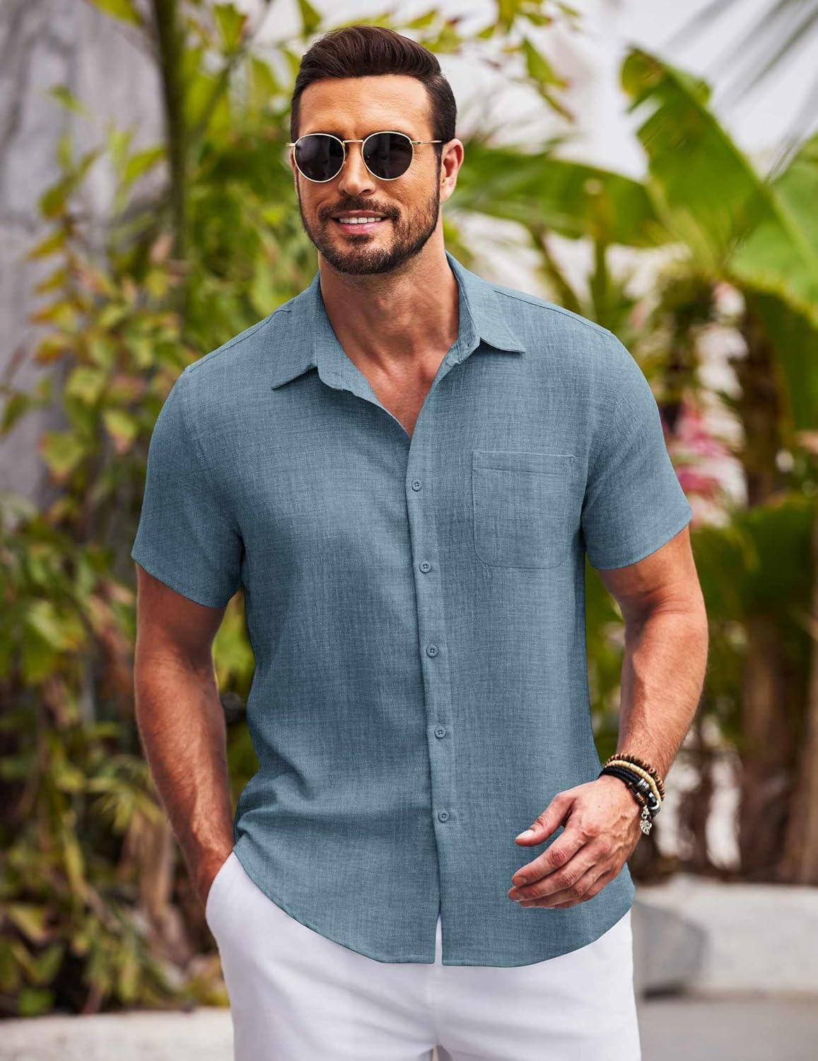 Get more for your money with our exclusive bundle deals on COOFANDY Mens Button Down Short Sleeve Shirts Casual Textured Shirt with Pocket Summer Beach Wedding Shirts(Dark Blue) and accessories.