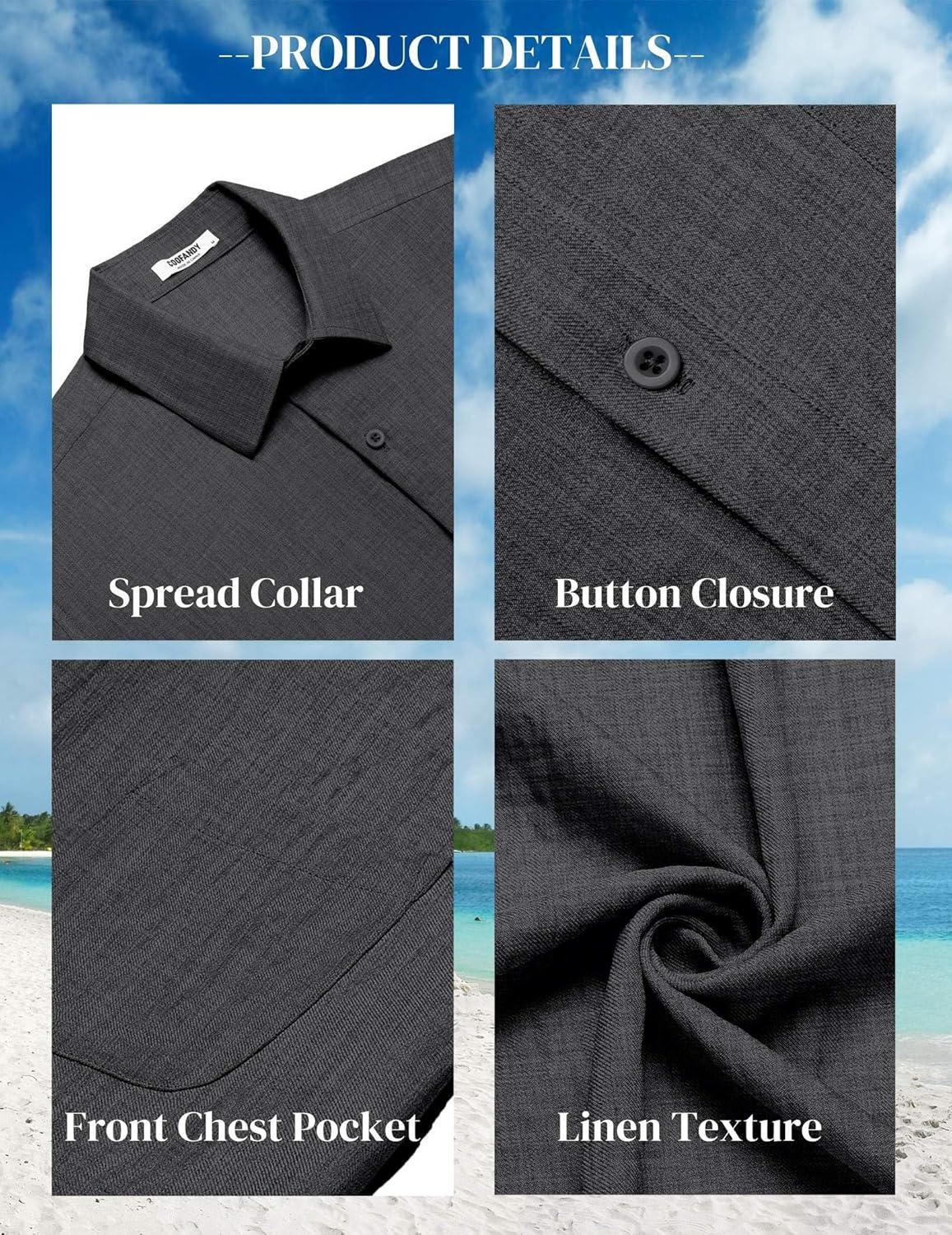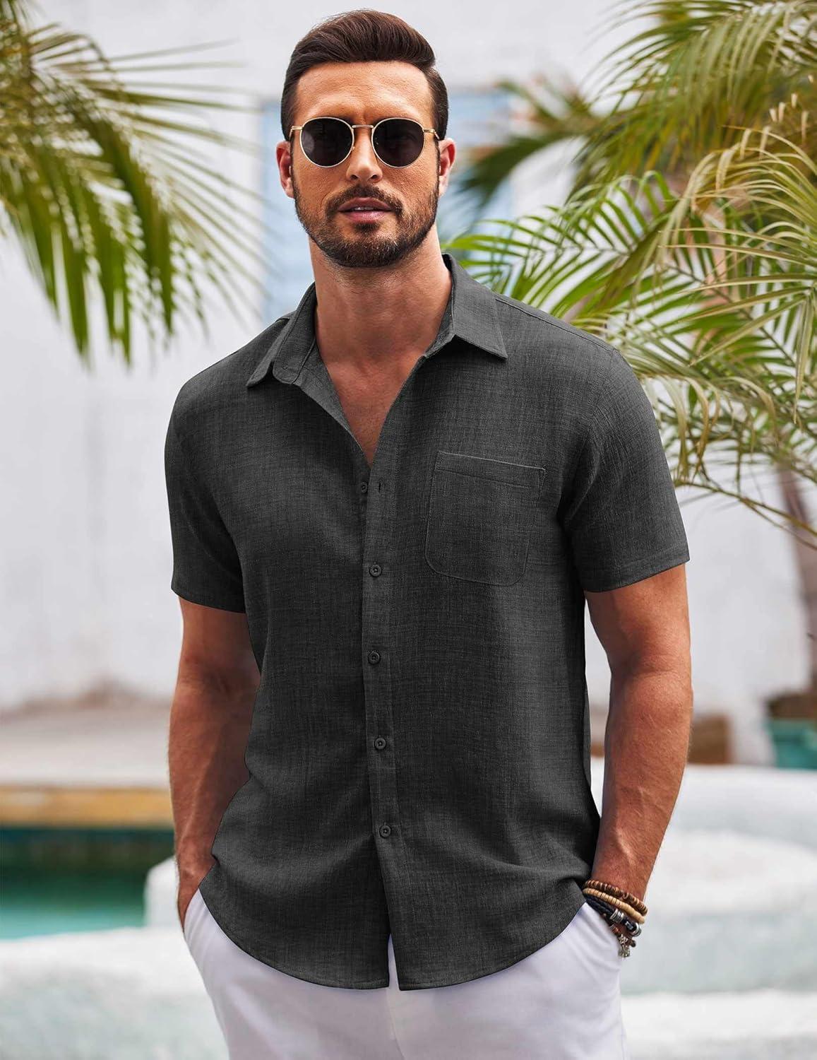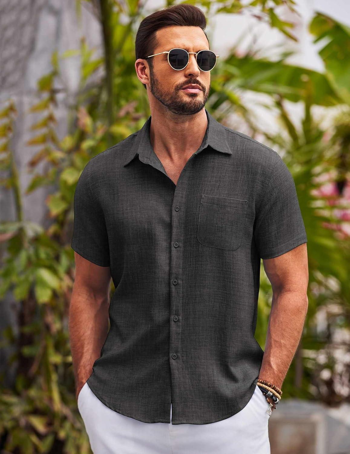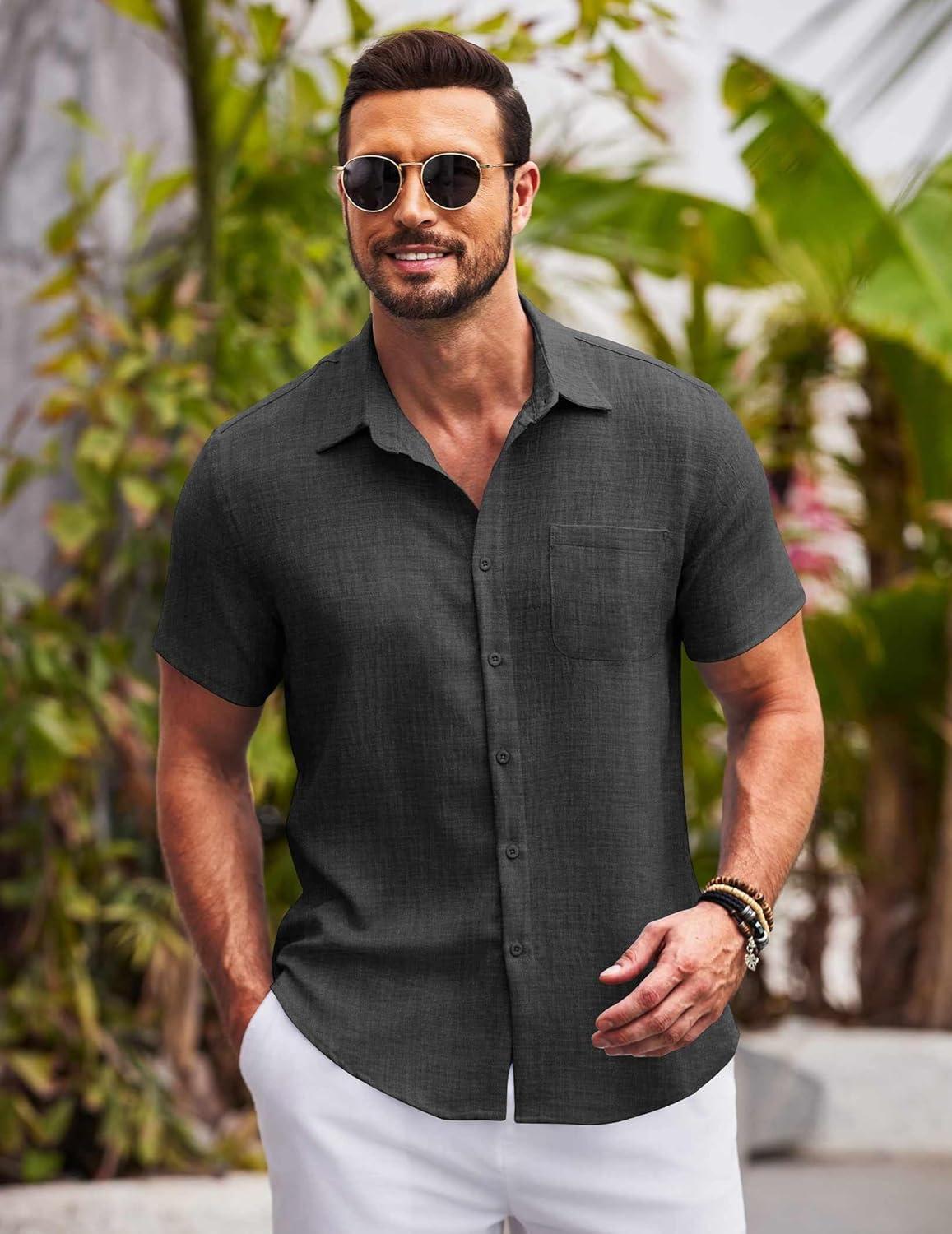 COOFANDY Mens Button Down Short Sleeve Shirts Casual Textured Shirt with Pocket Summer Beach Wedding Shirts(Dark Grey)