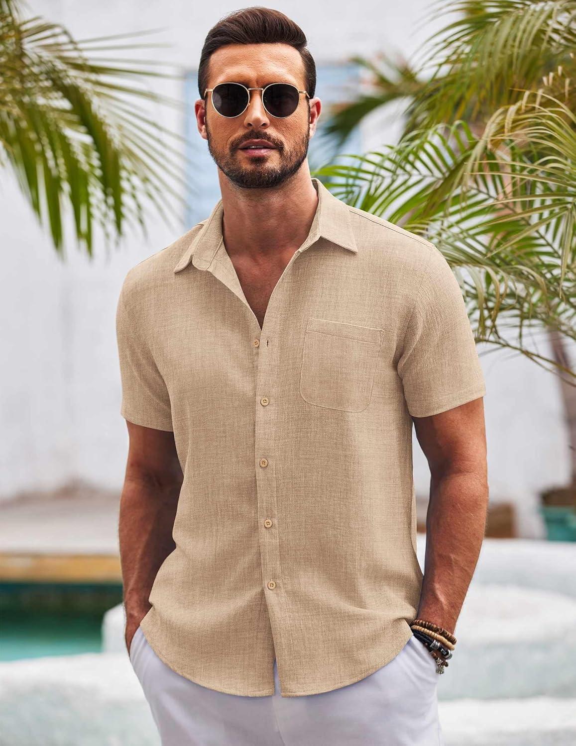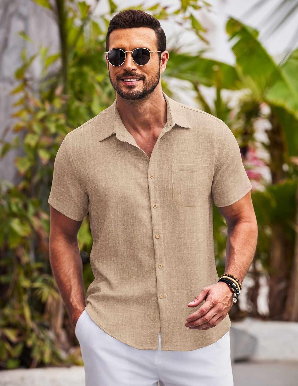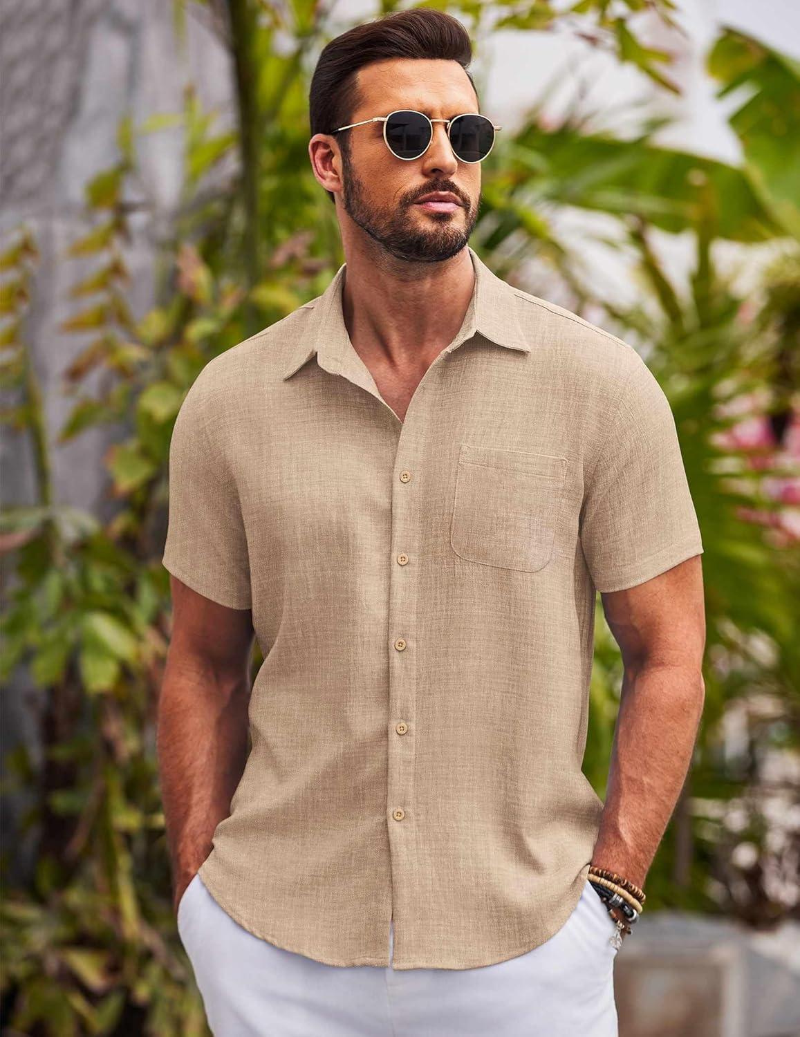 Don’t miss out on our limited-time offer: get a free {accessory} with your purchase of COOFANDY Mens Button Down Short Sleeve Shirts Casual Textured Shirt with Pocket Summer Beach Wedding Shirts(Khaki).