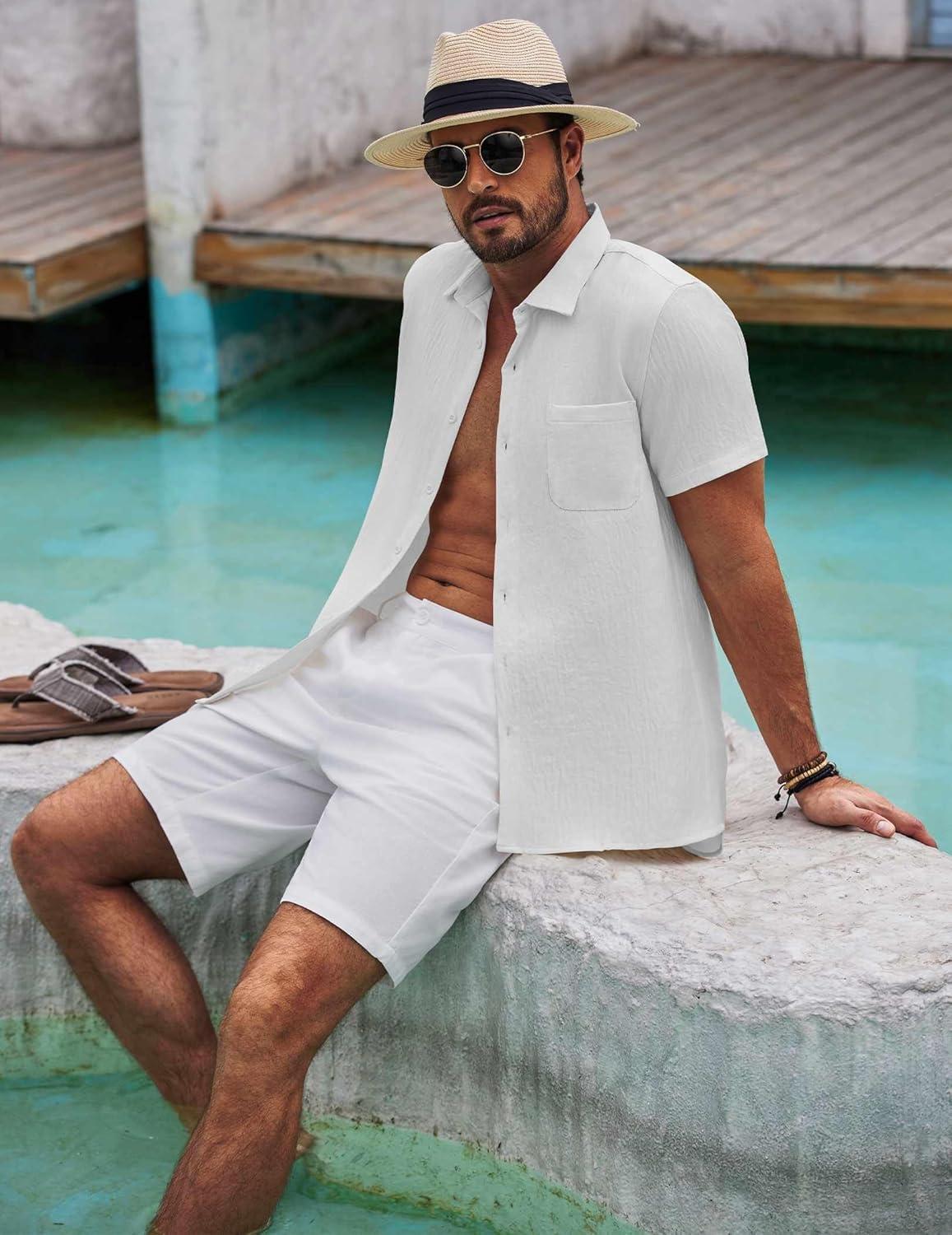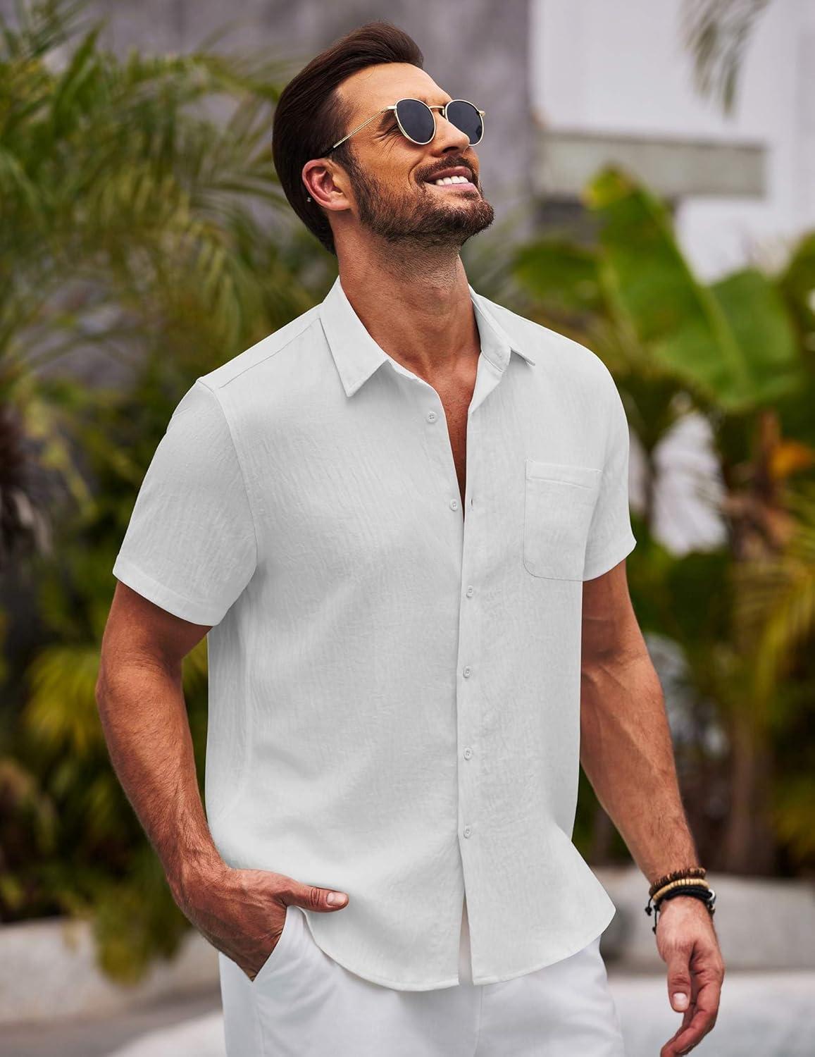 Our holiday sale features the best deals on COOFANDY Mens Button Down Short Sleeve Shirts Casual Textured Shirt with Pocket Summer Beach Wedding Shirts(White) and accessories. Shop now and save!