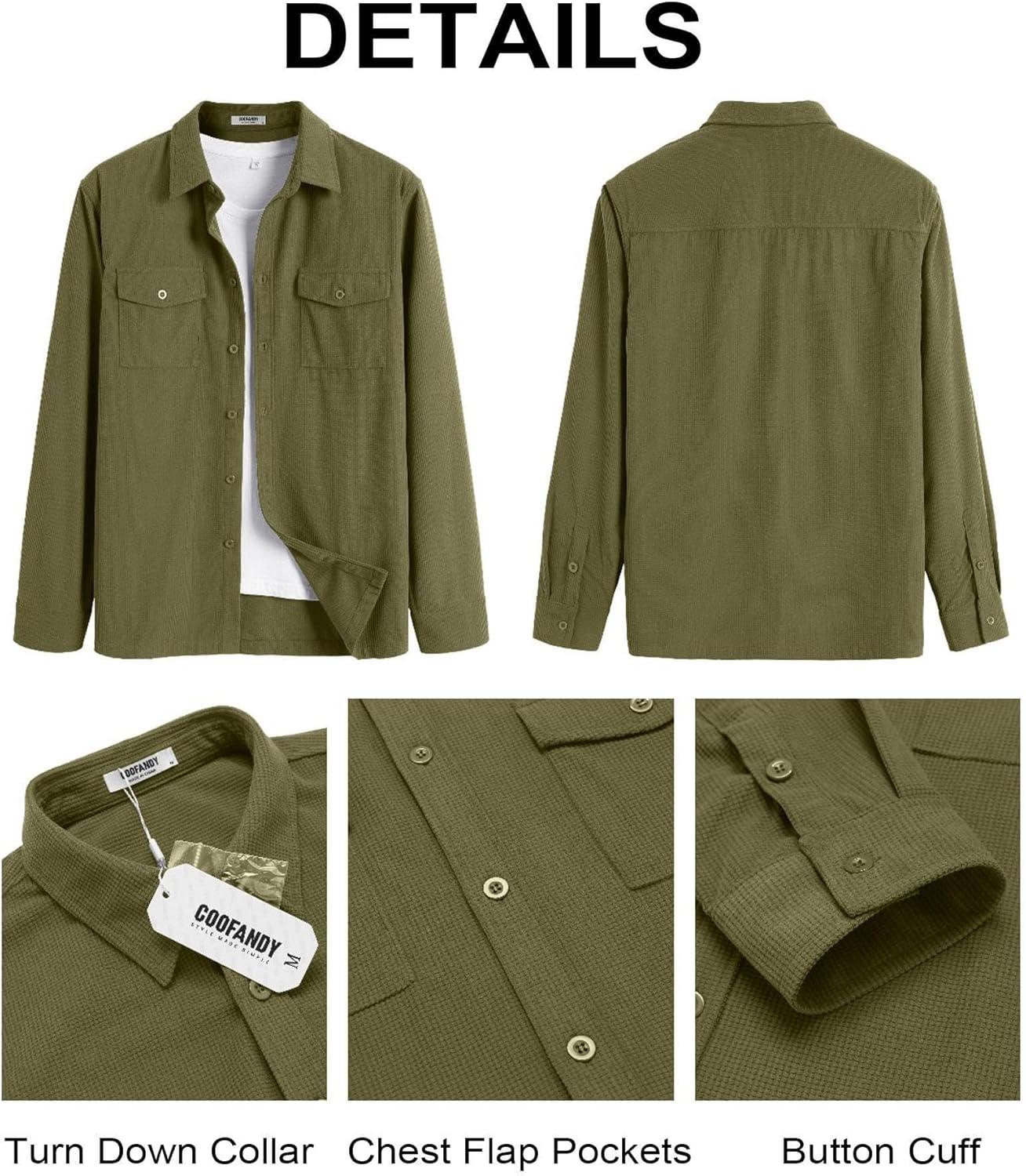 Don’t miss out on our limited-time offer: buy COOFANDY Men’s Button Down Waffle Shirt Jacket Casual Long Sleeve Shacket Lightweight Overshirts with Flap Pockets(Olive Green), get a free {accessory}!