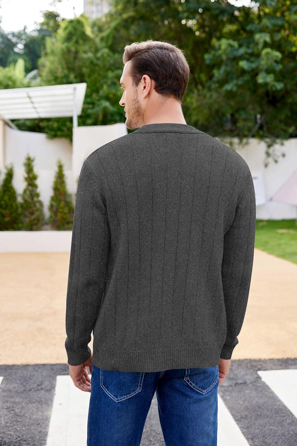 COOFANDY Men’s Cardigan Sweater Cable Knit V Neck Button up Sweaters Ribbed Cardigan Sweater with Pockets(Dark Grey)