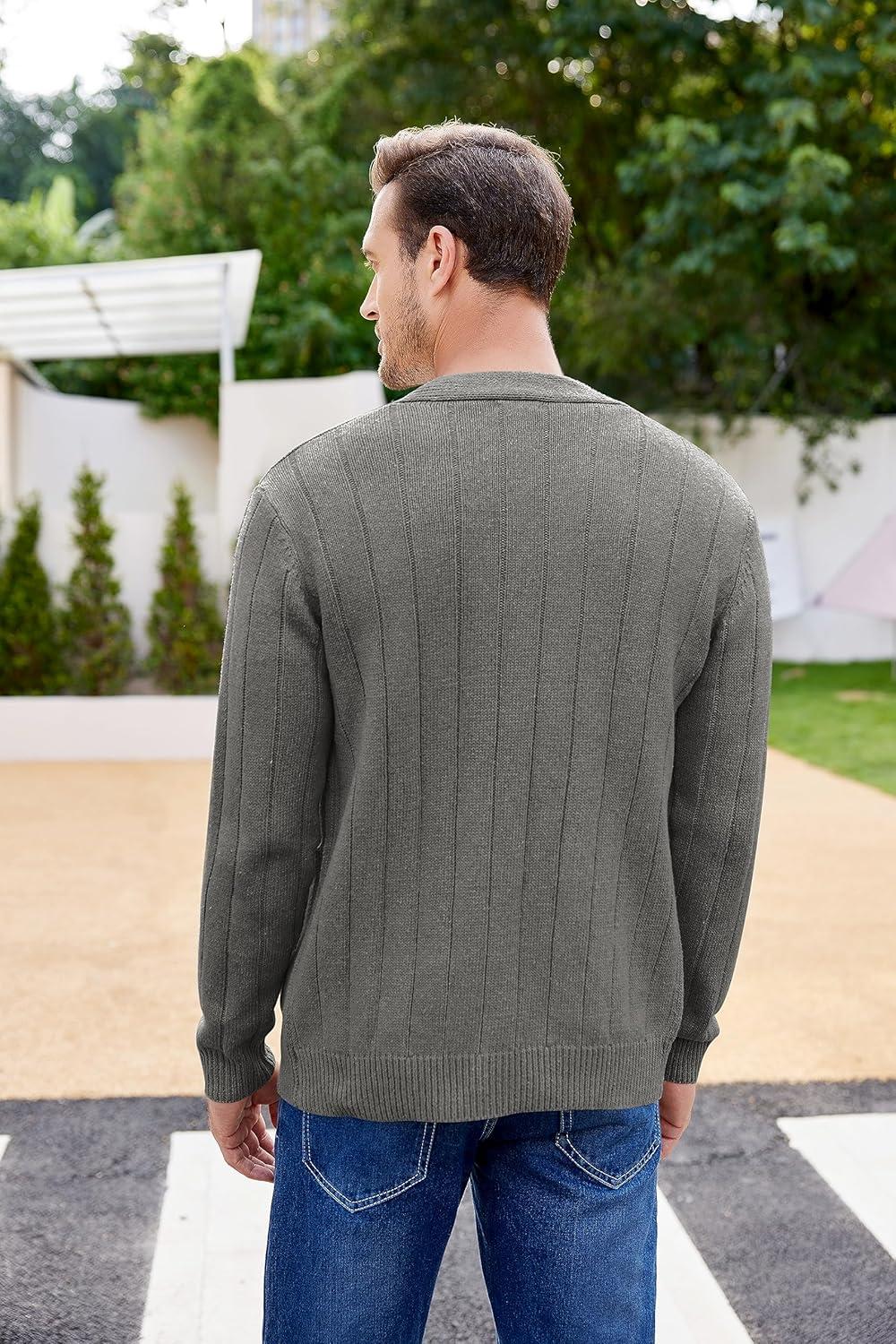 COOFANDY Men’s Cardigan Sweater Cable Knit V Neck Button up Sweaters Ribbed Cardigan Sweater with Pockets(Grey)