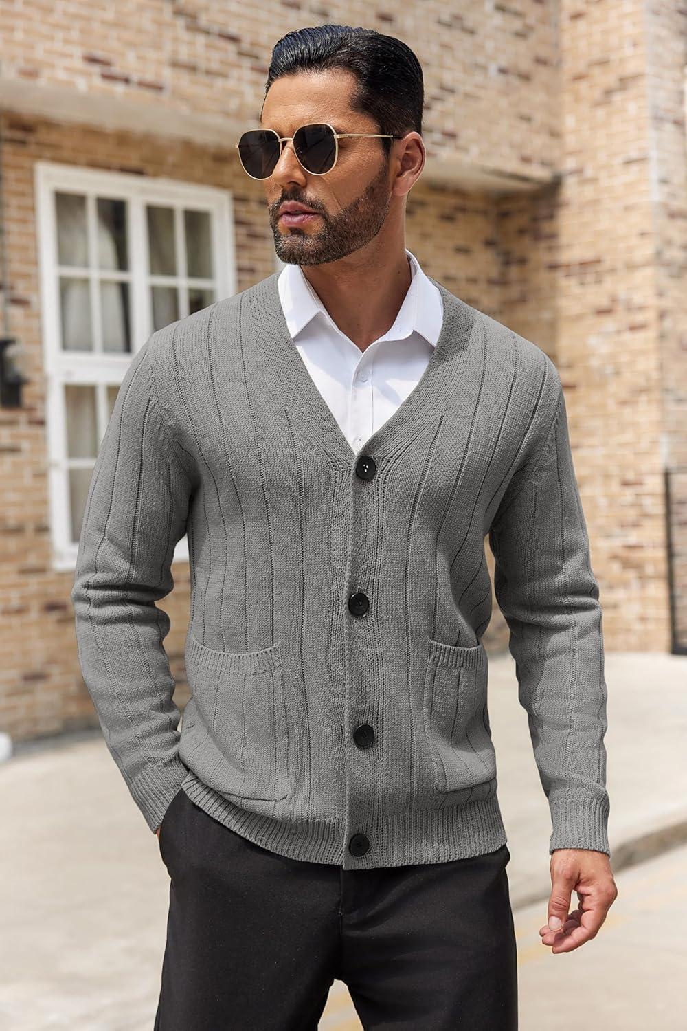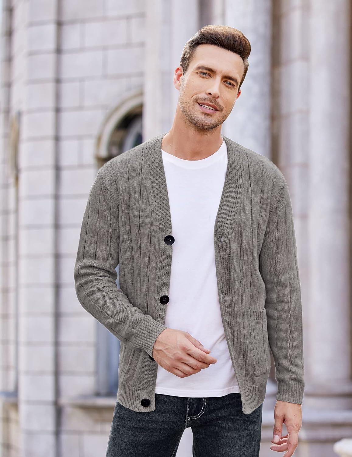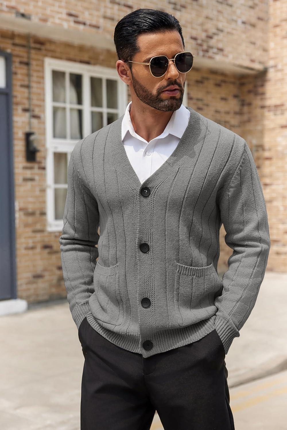 Get up to 60% off on COOFANDY Men’s Cardigan Sweater Cable Knit V Neck Button up Sweaters Ribbed Cardigan Sweater with Pockets(Grey) styles during our winter sale event.