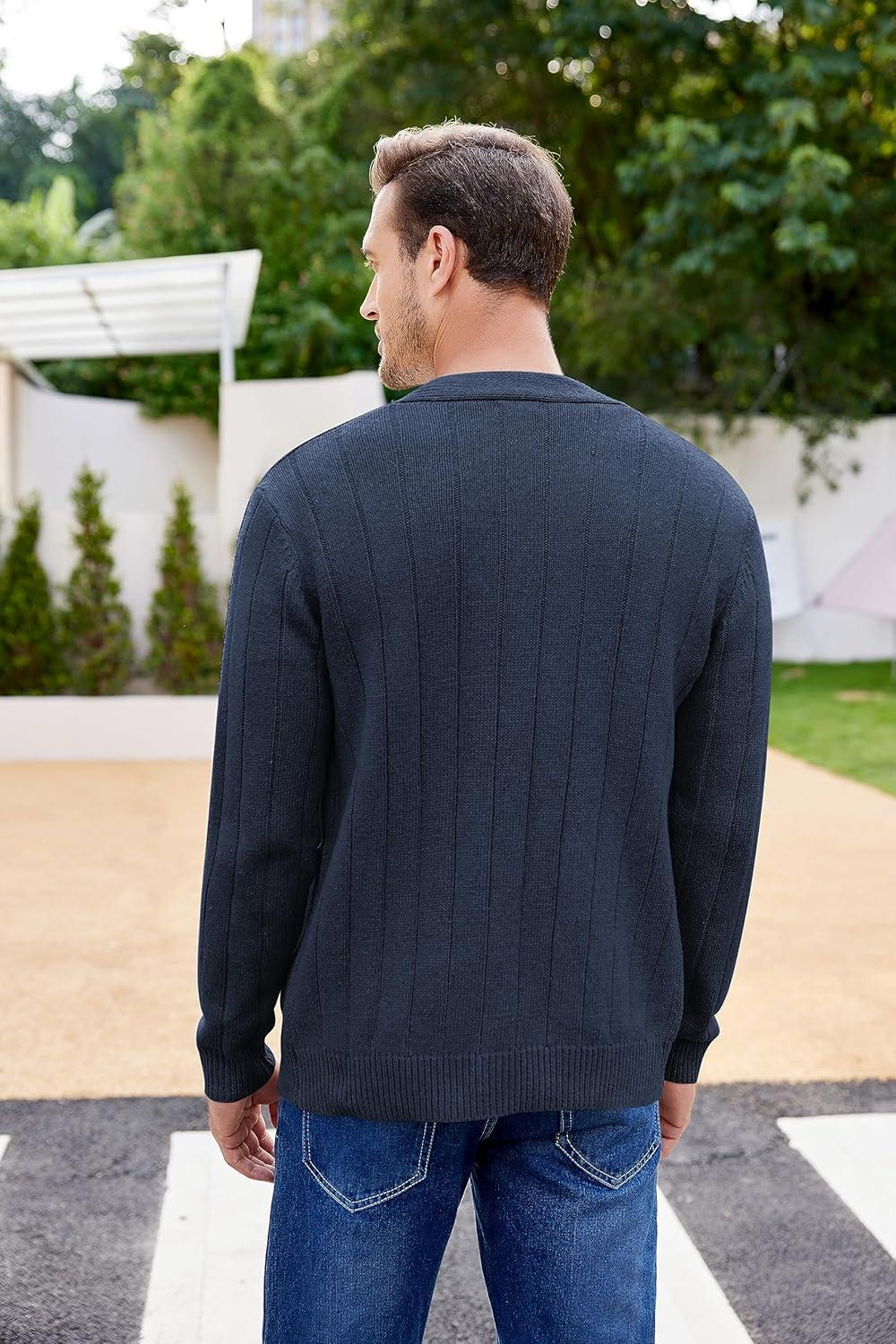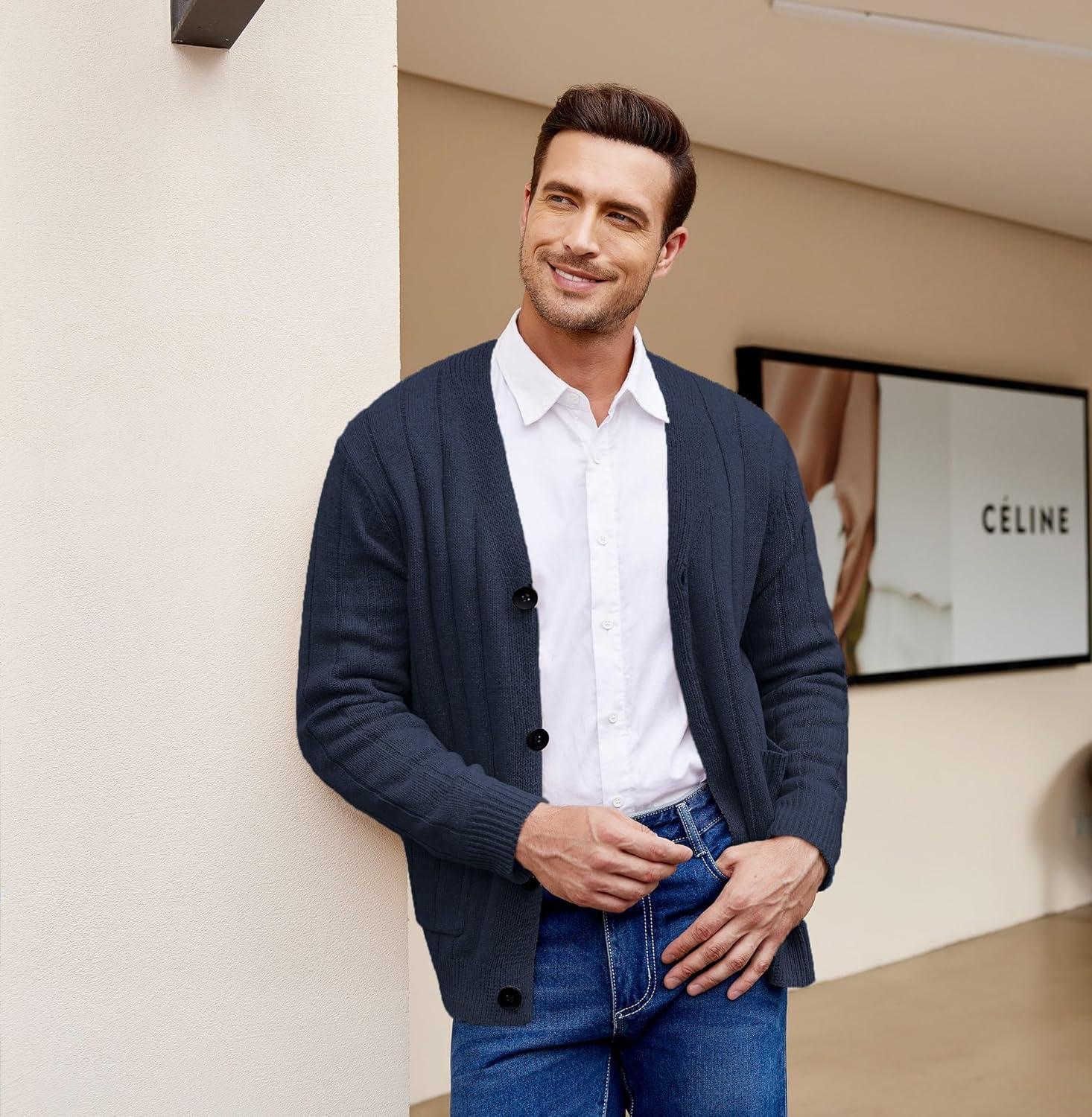 COOFANDY Men’s Cardigan Sweater Cable Knit V Neck Button up Sweaters Ribbed Cardigan Sweater with Pockets(Navy Blue)