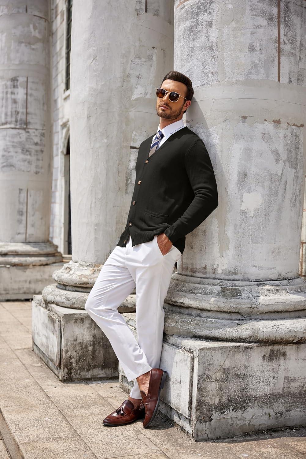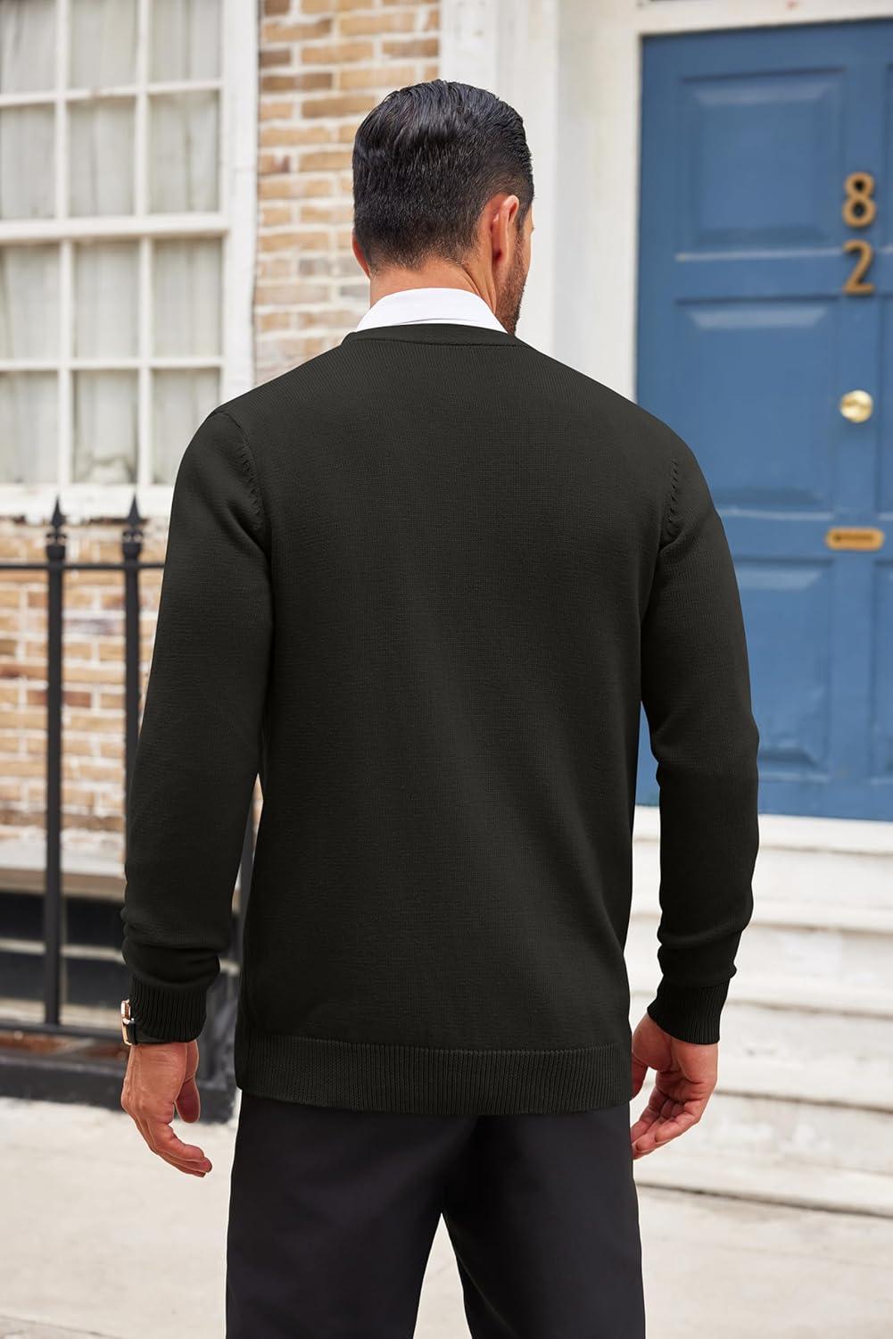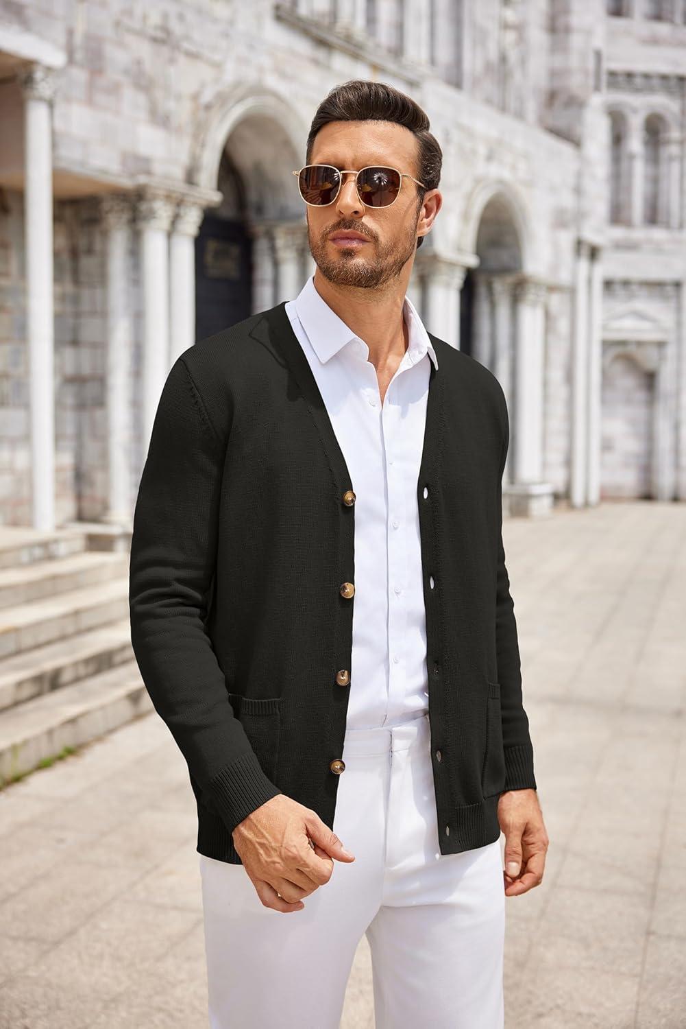 COOFANDY Men’s Cardigan Sweater Long Sleeve Casual V Neck Button Down Knitted Sweater with Pockets(Black)