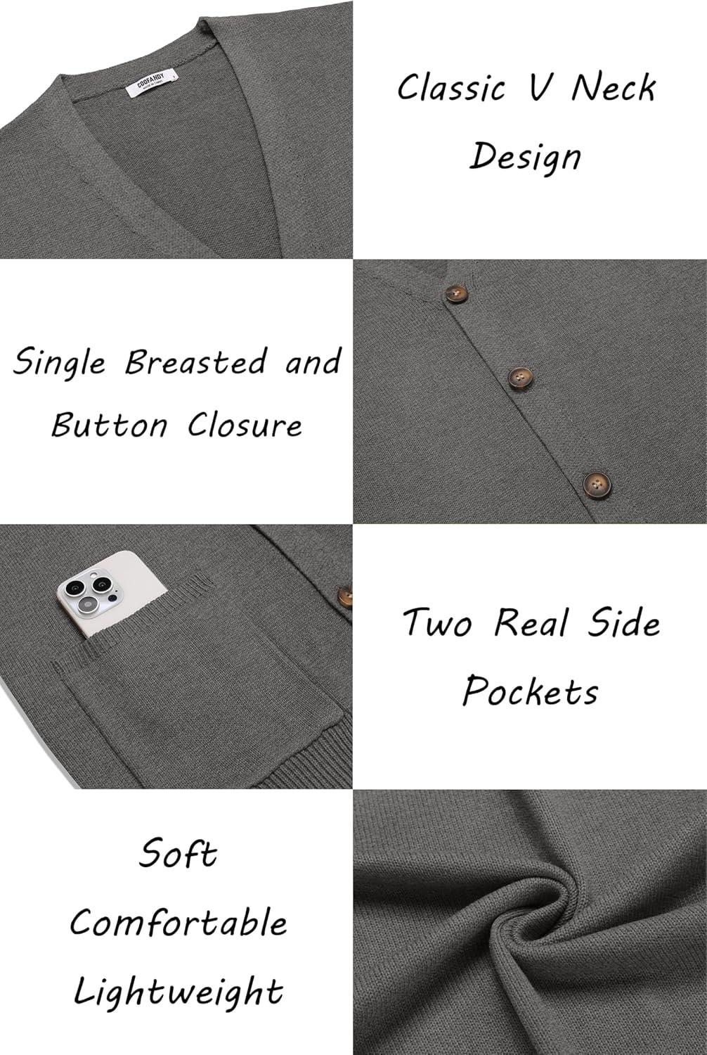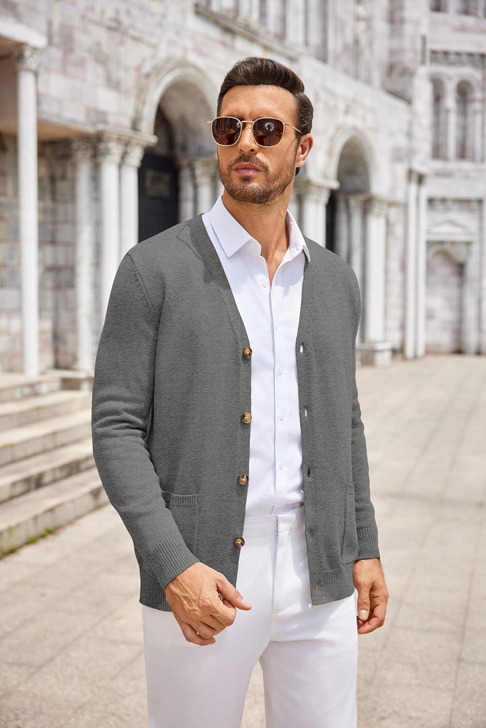 COOFANDY Men’s Cardigan Sweater Long Sleeve Casual V Neck Button Down Knitted Sweater with Pockets(Grey)