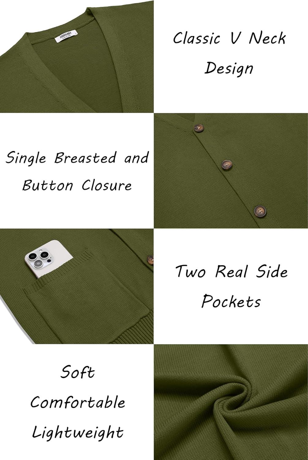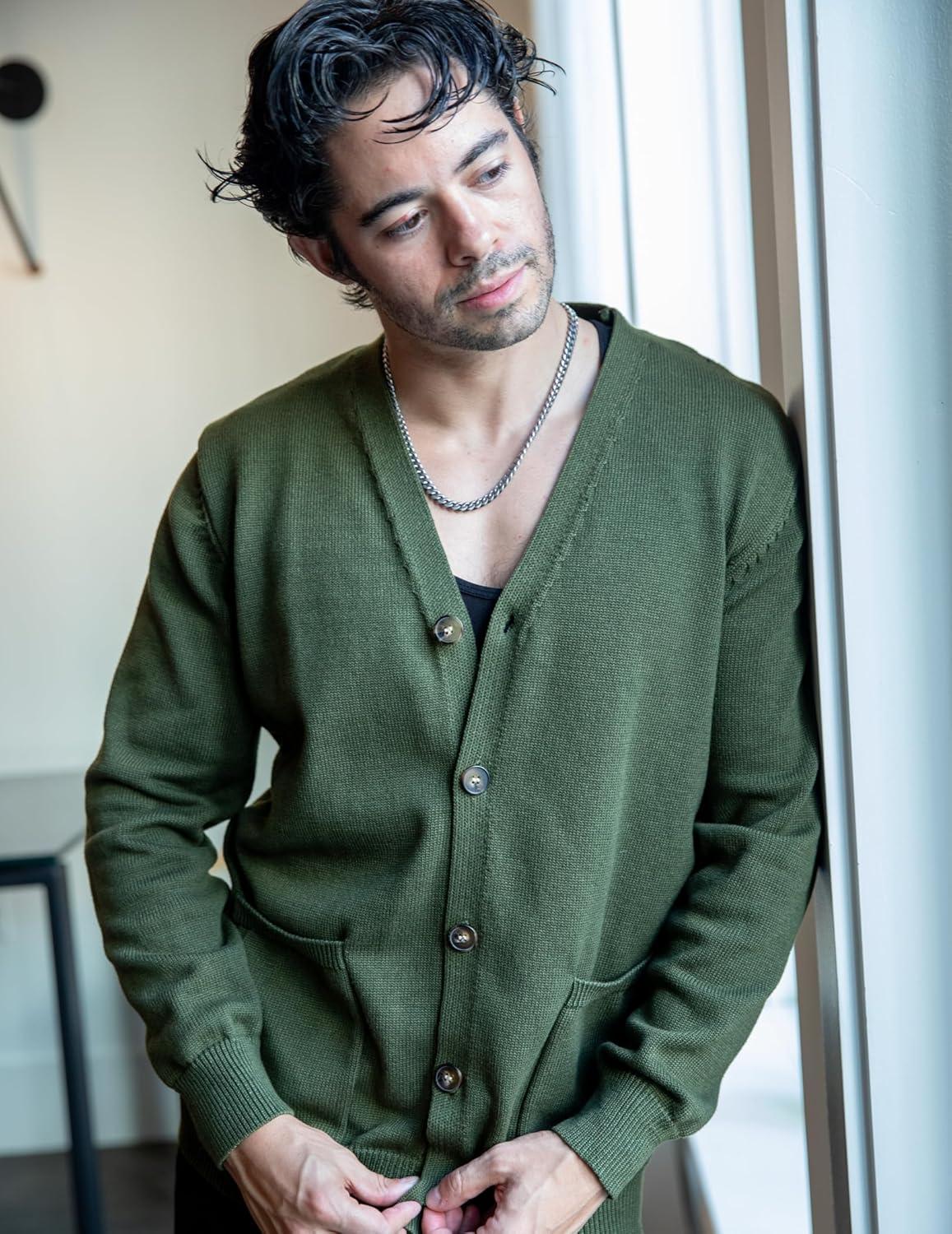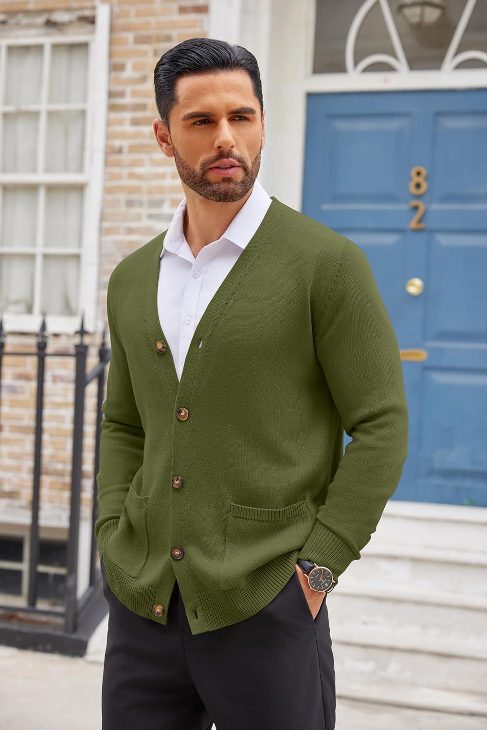 COOFANDY Men's Cardigan Sweater Long Sleeve Casual V Neck Lightweight Button Down Knitted Sweater with Pockets Fall Clothes(Army Green)