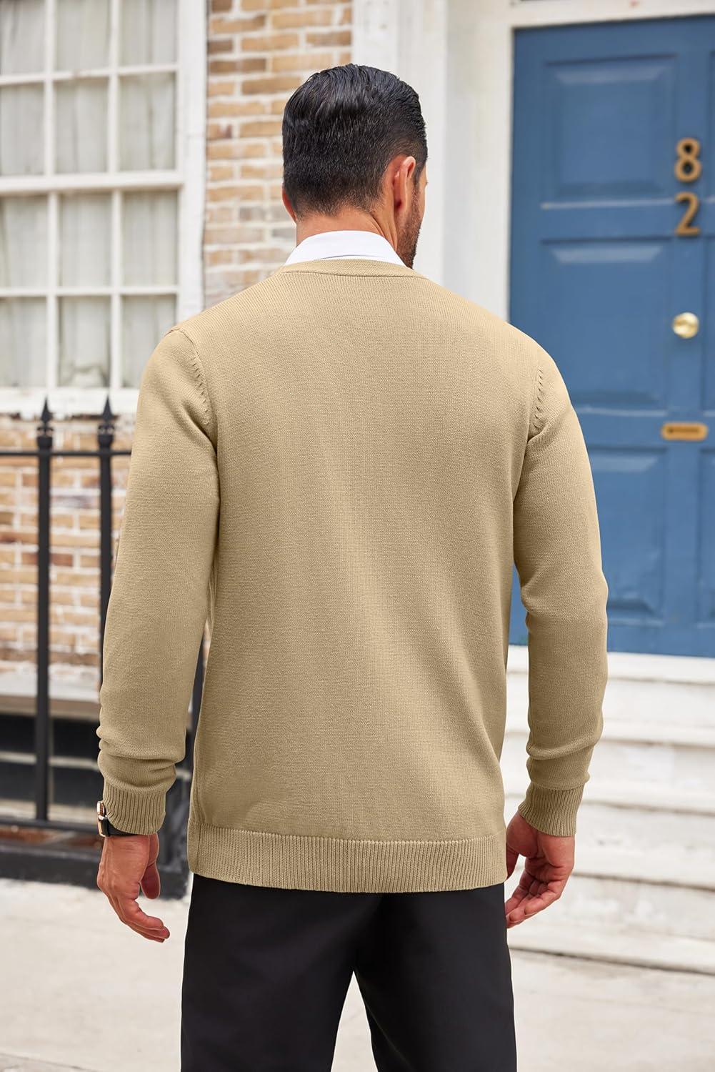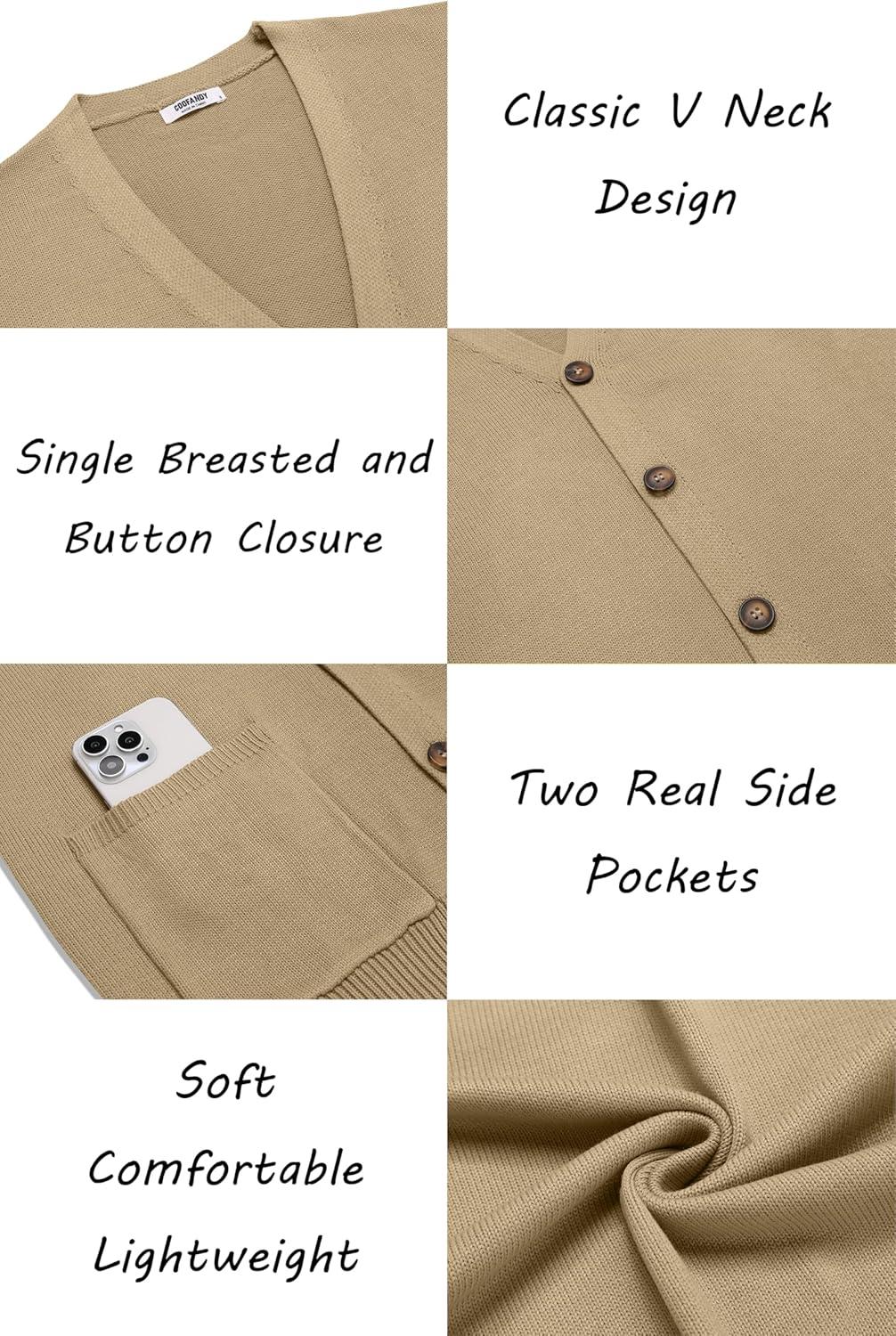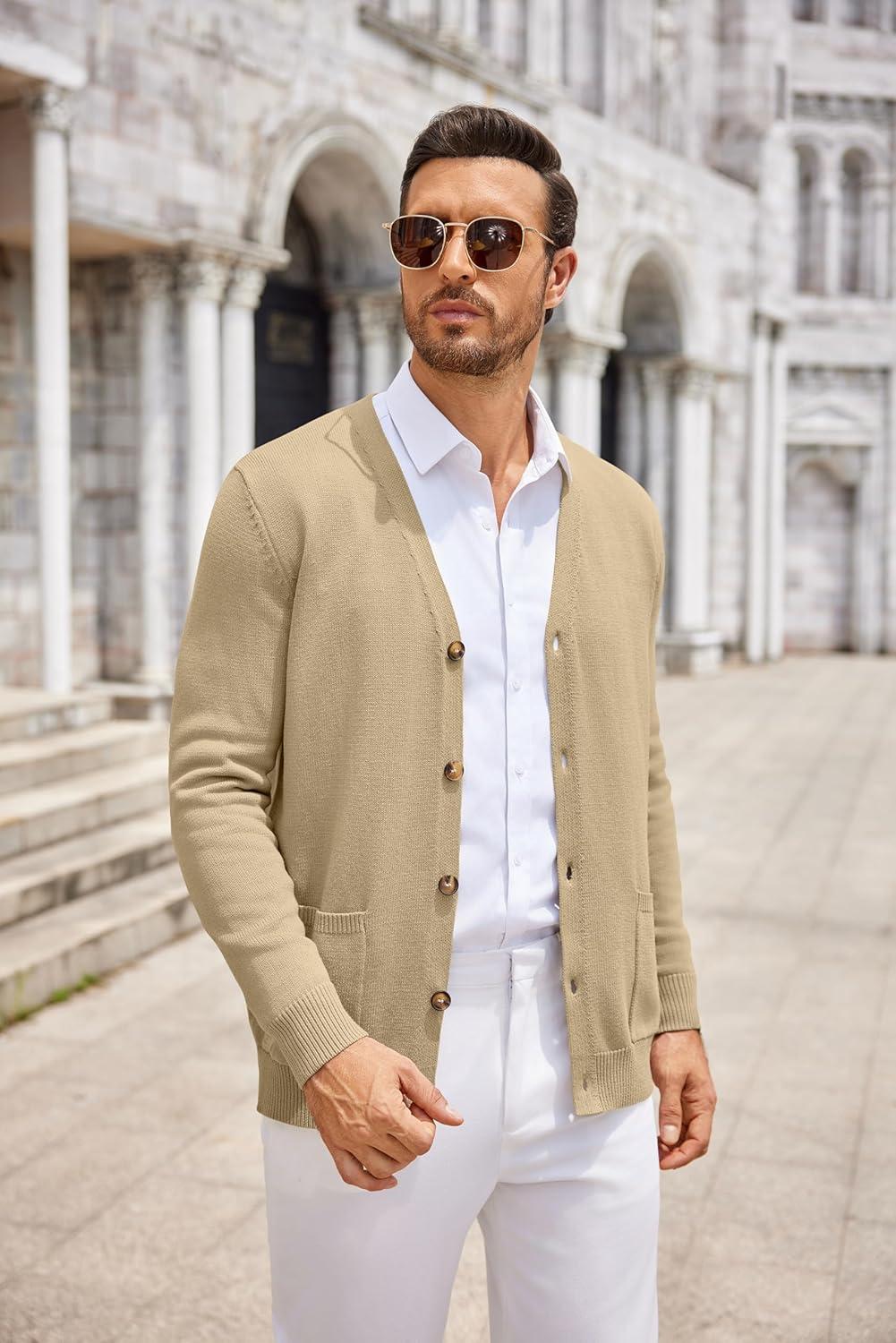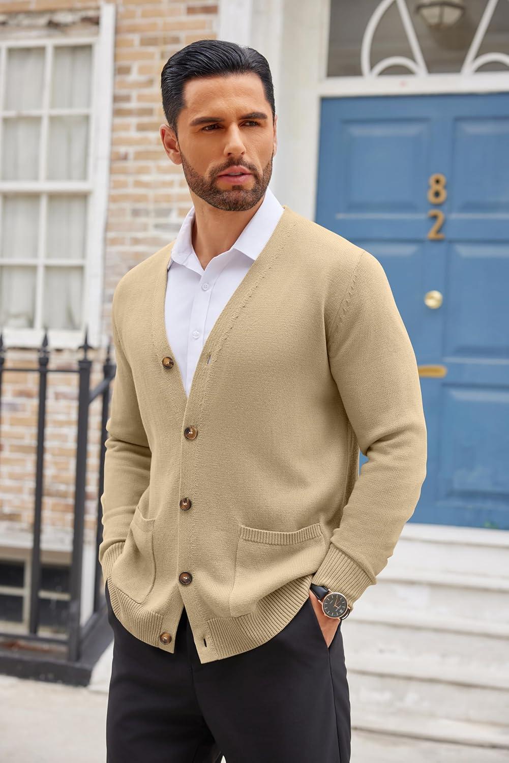 COOFANDY Men’s Cardigan Sweater Long Sleeve Casual V Neck Lightweight Button Down Knitted Sweater with Pockets Fall Clothes(Khaki)