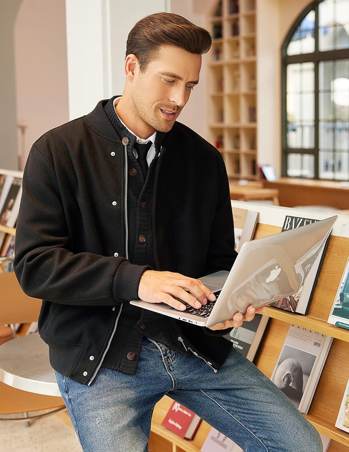 Get the COOFANDY Men’s Cardigan Sweater Slim Fit Stand Collar Cardigan Casual Cable Knitted Button Down Sweater with Pockets(Black) you want at a price you can afford with our markdown sale.