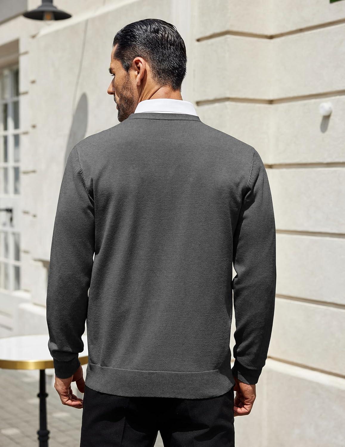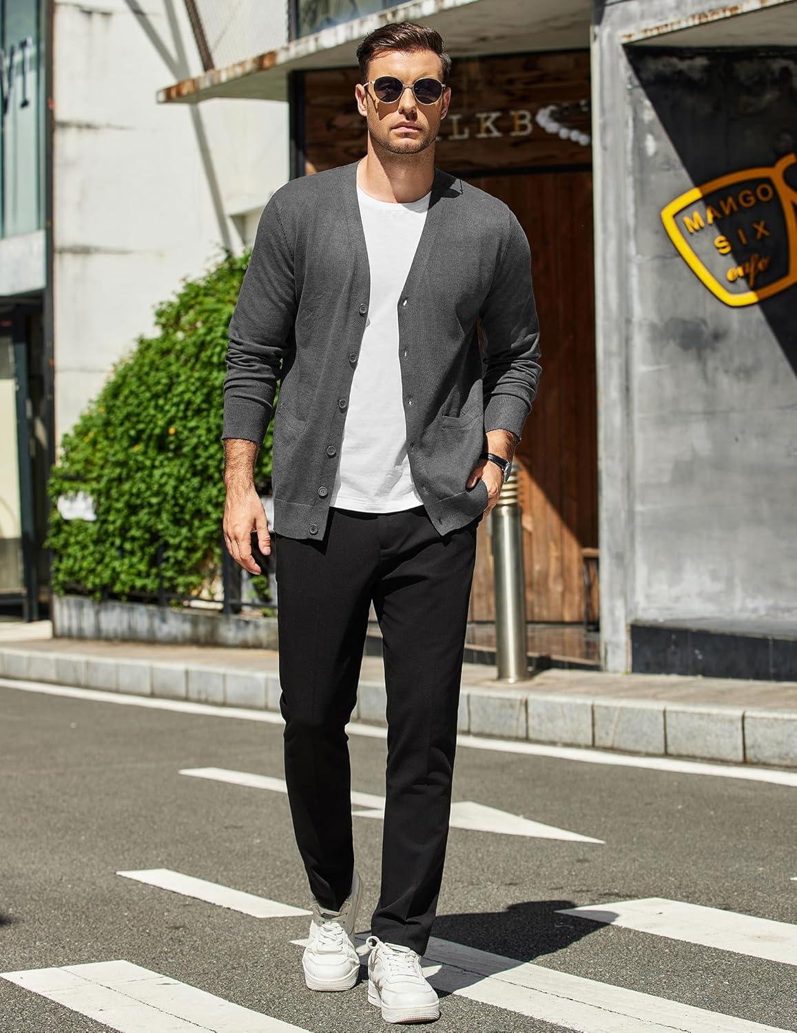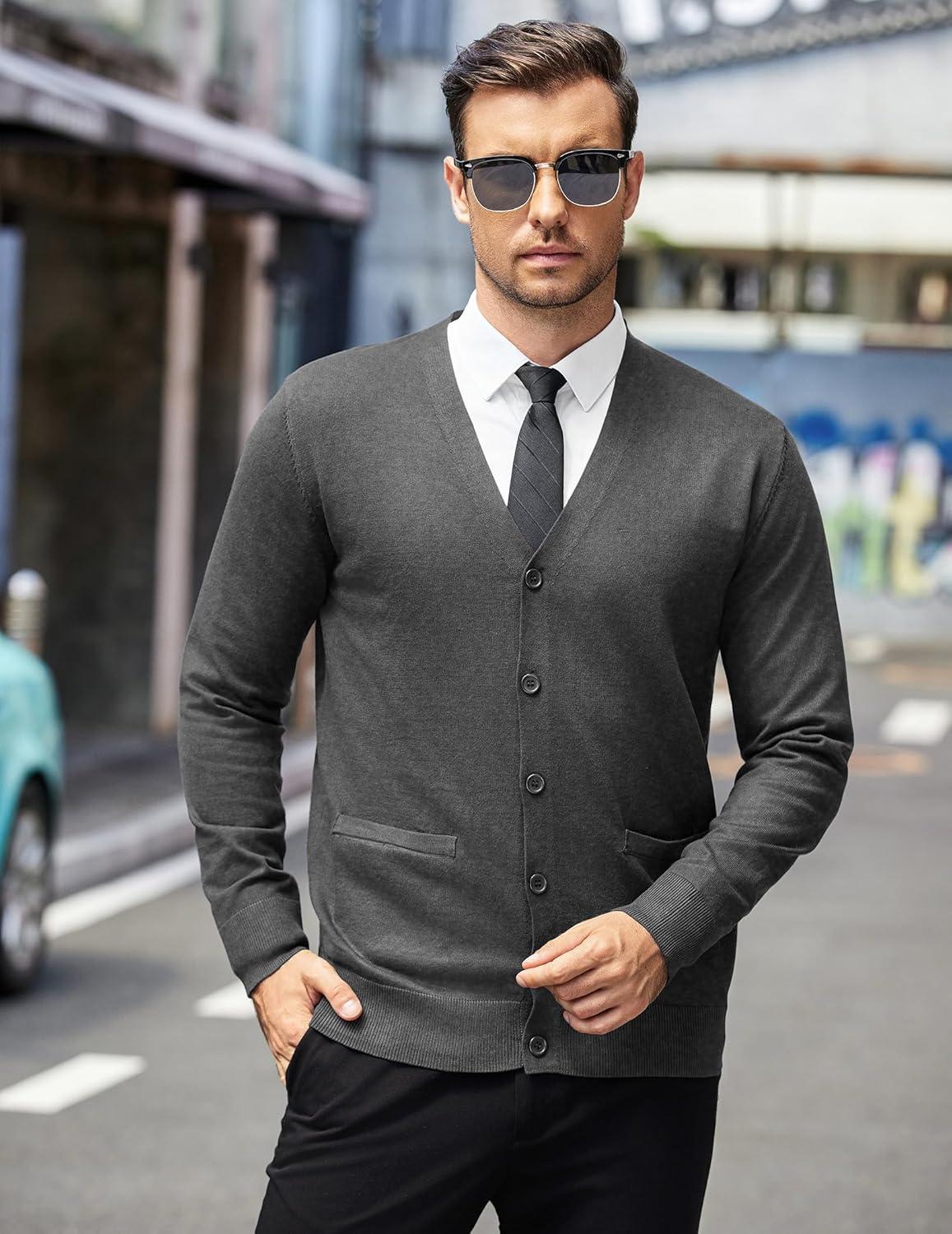 COOFANDY Mens Cardigan Sweaters Long Sleeve V Neck Cardigans Lightweight Knitted Button Down Sweaters with Pockets(Dark Grey)