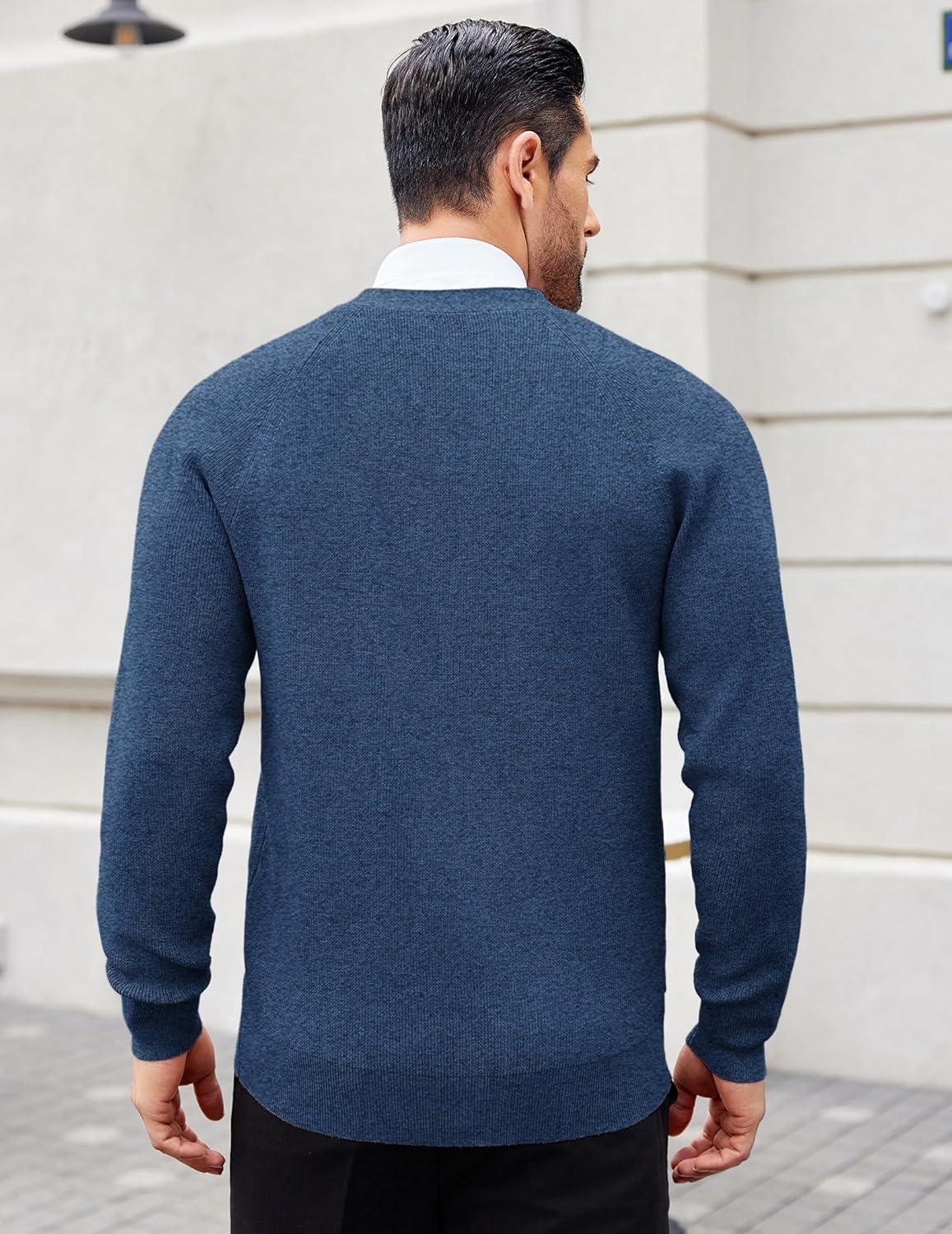 COOFANDY Men’s Cardigan Sweaters with Button Lightweight Casual V Neck Long Sleeve Pockets Knitted Sweater(Blue)
