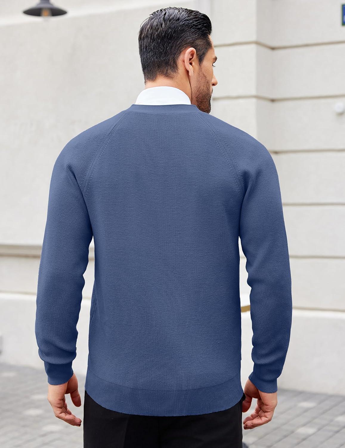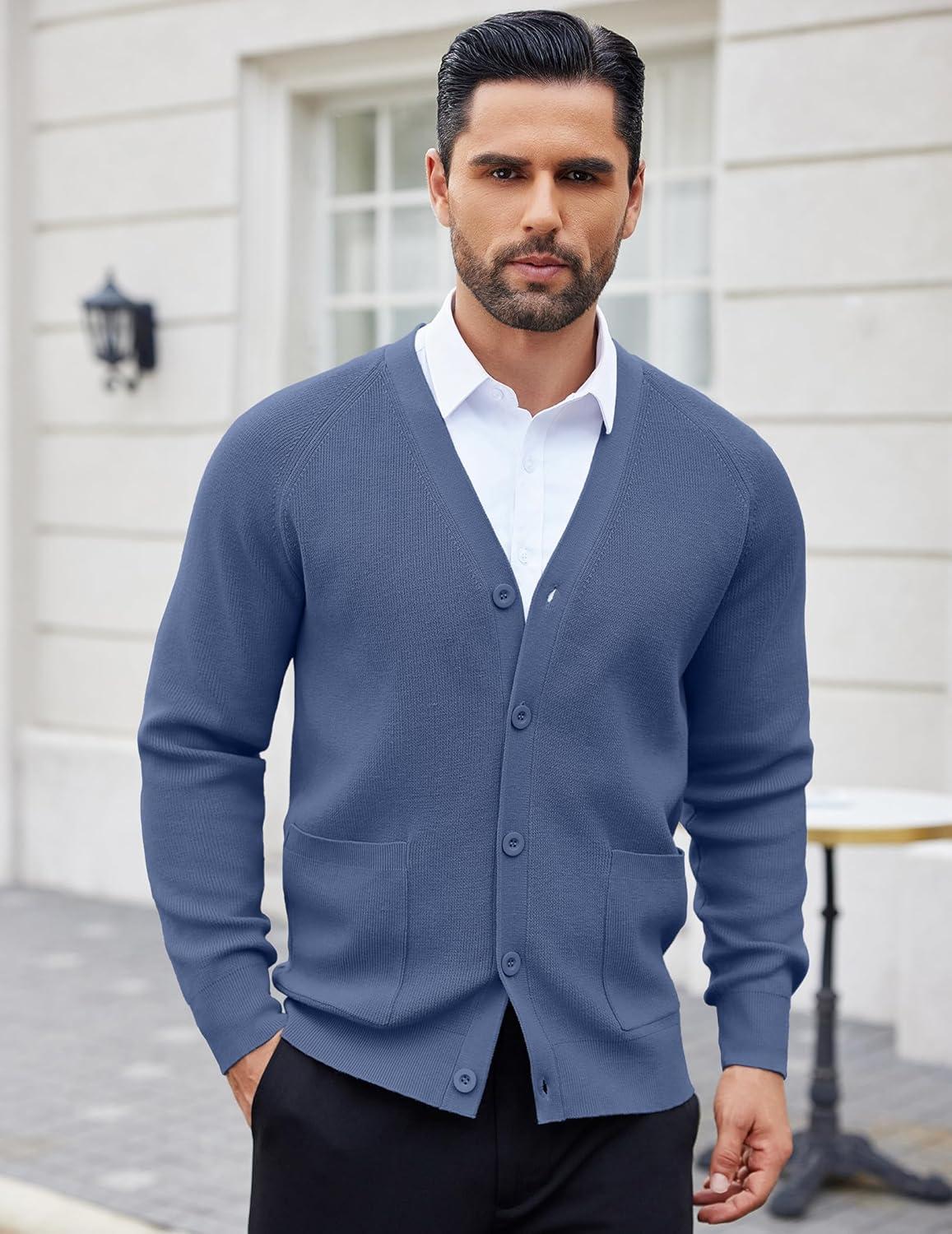 COOFANDY Men's Cardigan Sweaters with Button Lightweight Casual V Neck Long Sleeve Pockets Knitted Sweater(Dusty Blue)