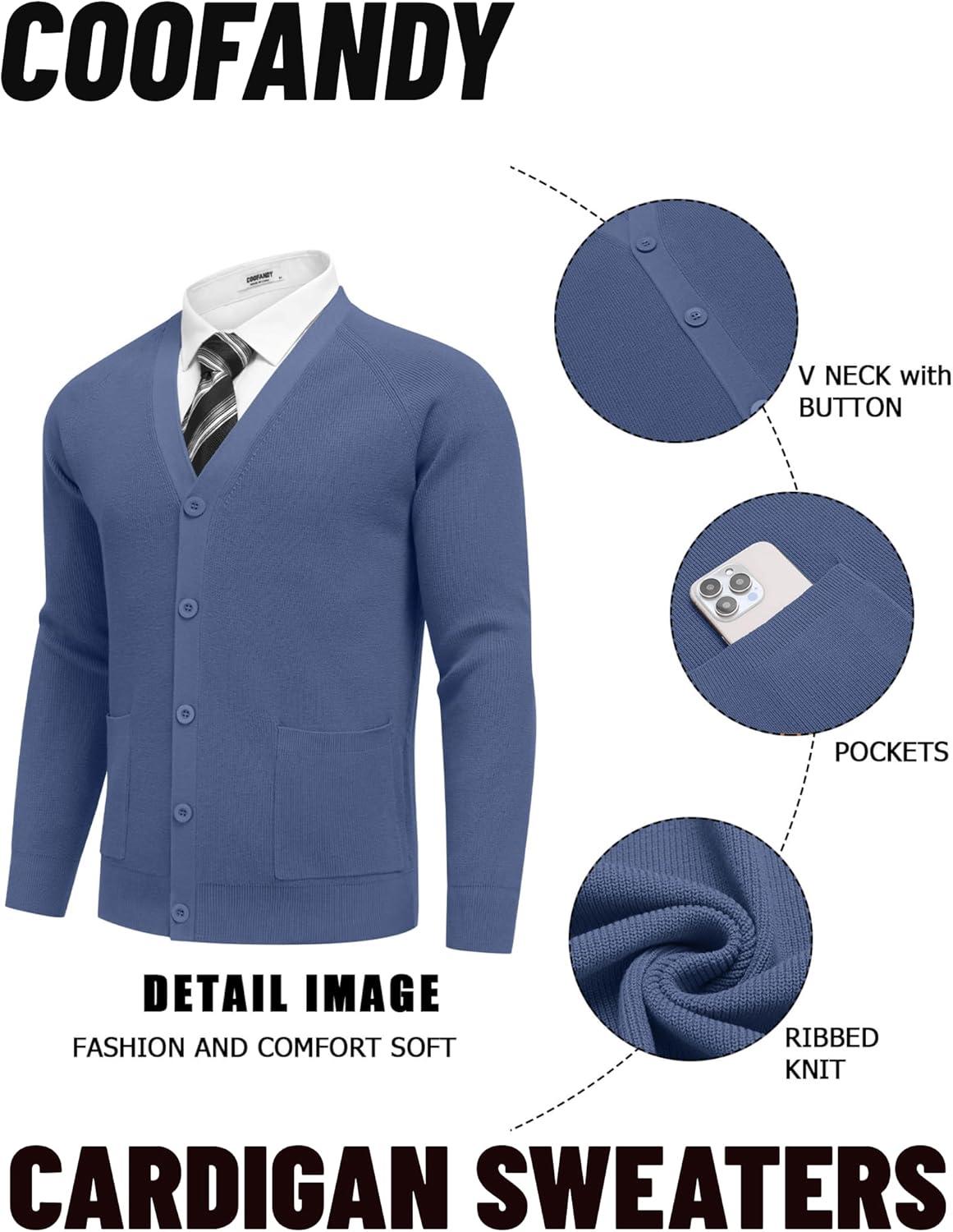 Get up to 70% off on COOFANDY Men’s Cardigan Sweaters with Button Lightweight Casual V Neck Long Sleeve Pockets Knitted Sweater(Dusty Blue) styles during our end-of-season clearance event.