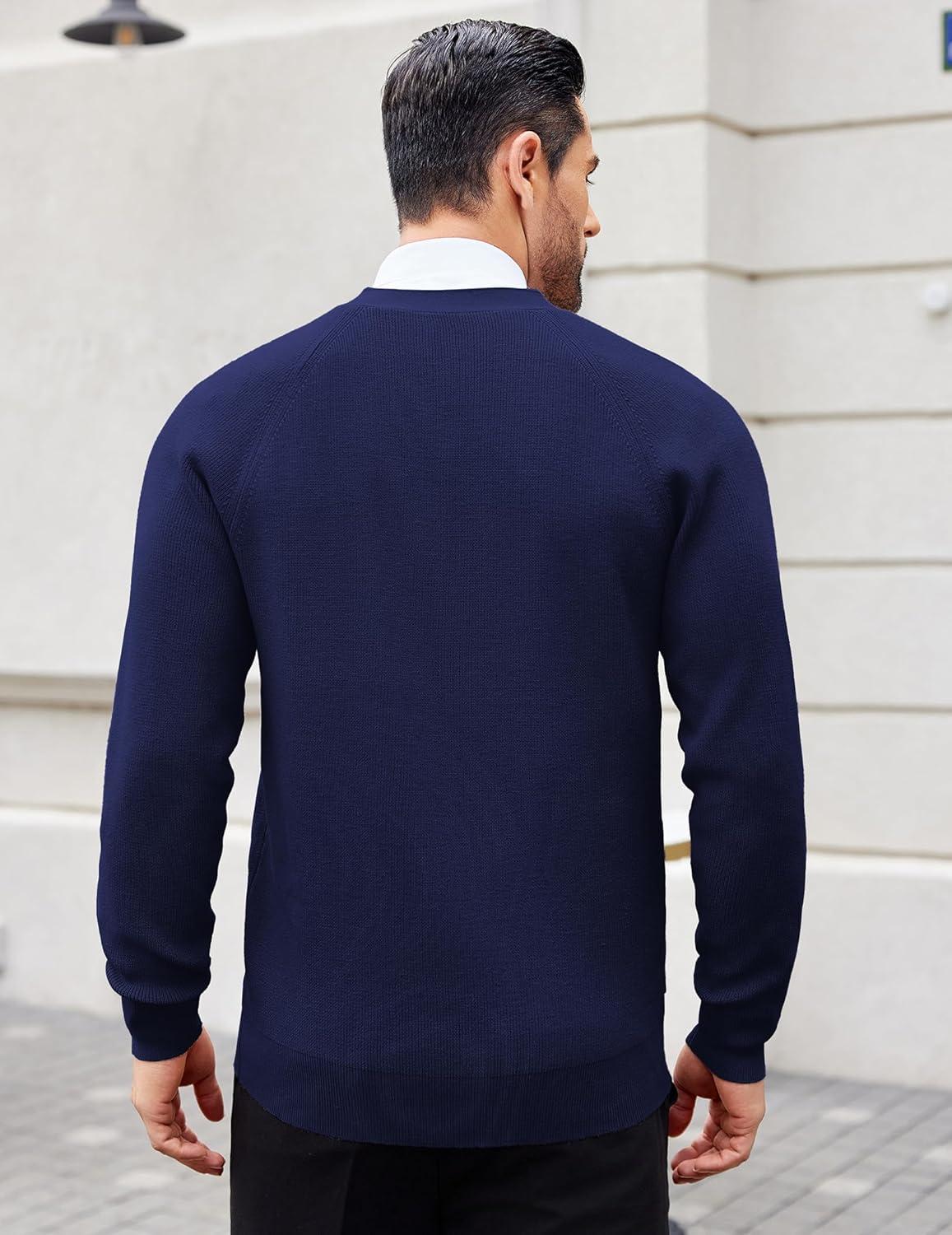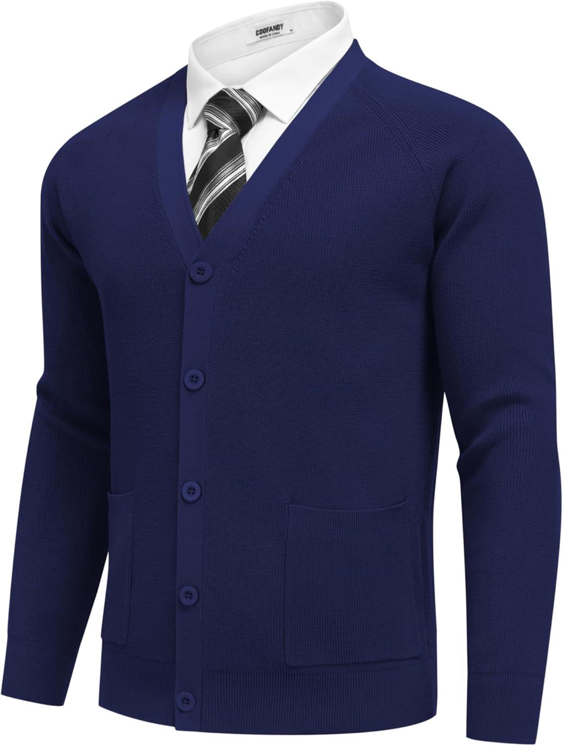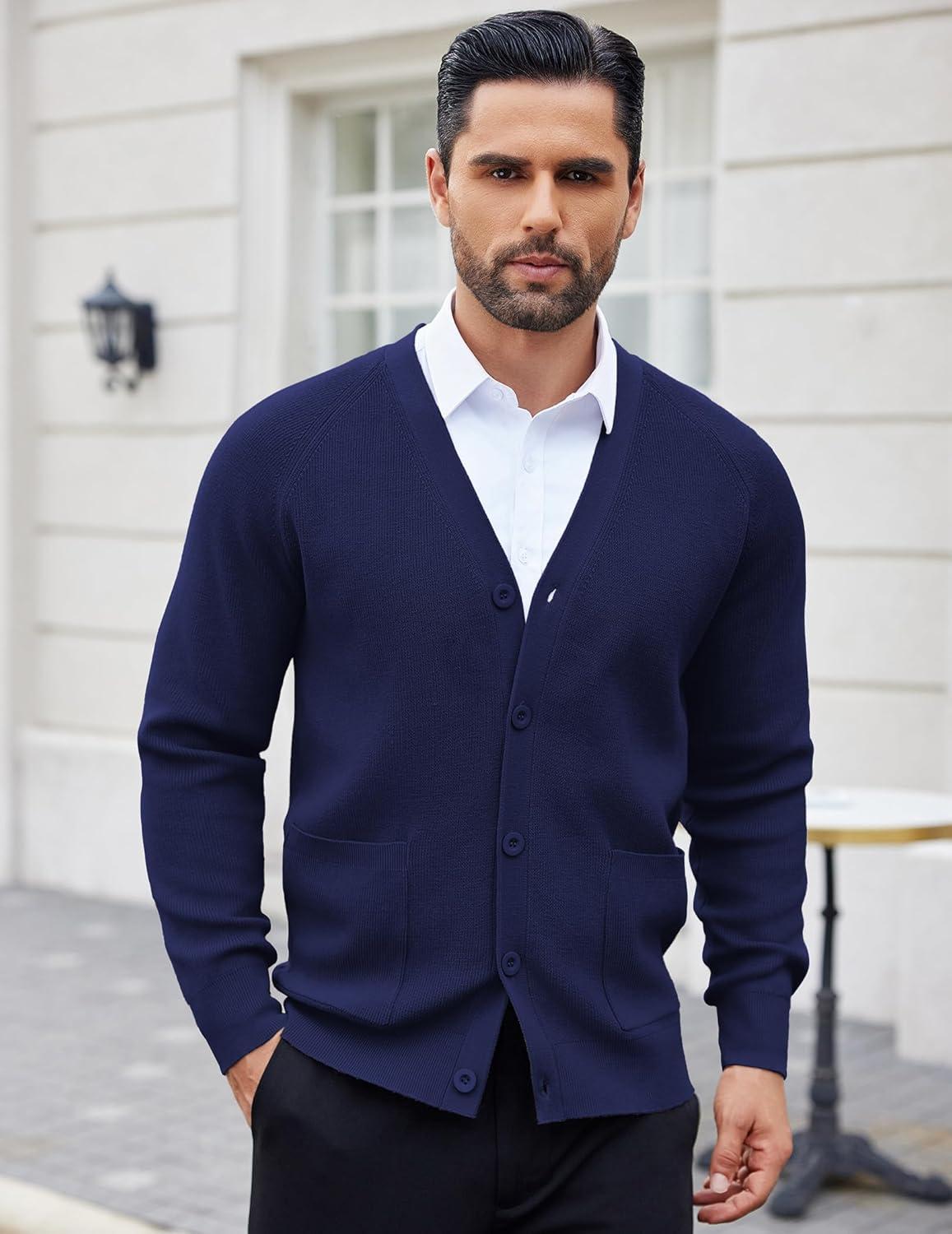COOFANDY Men's Cardigan Sweaters with Button Lightweight Casual V Neck Long Sleeve Pockets Knitted Sweater(Navy Blue)