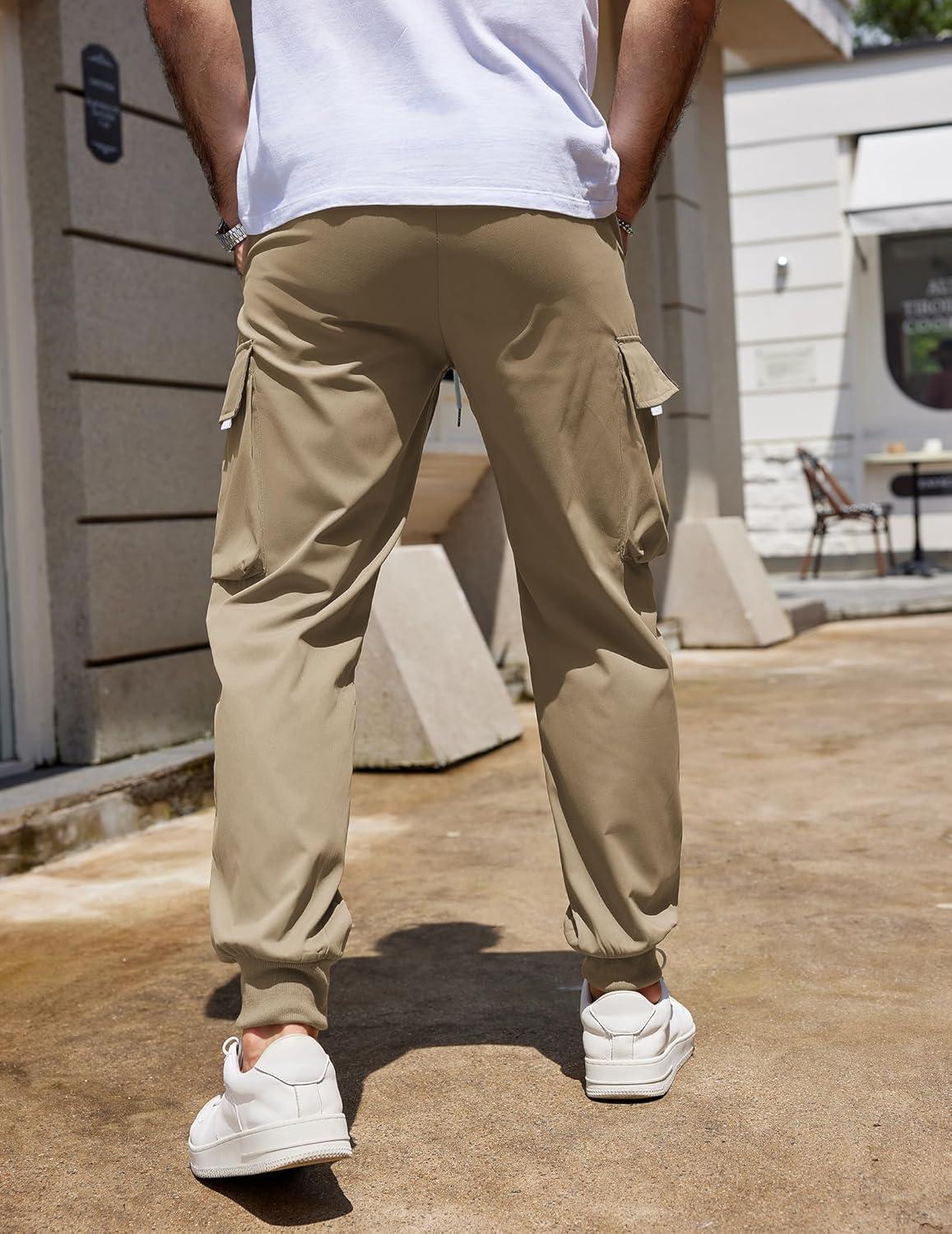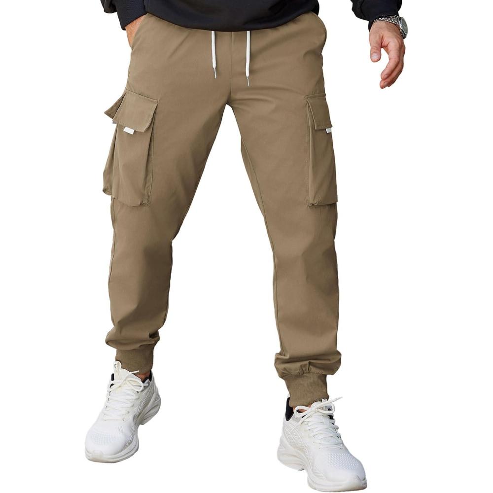 COOFANDY Men's Cargo Joggers Drawstring Jogger Cargo Pants Fashion Tapered Pants with Multi Pockets(Khaki)