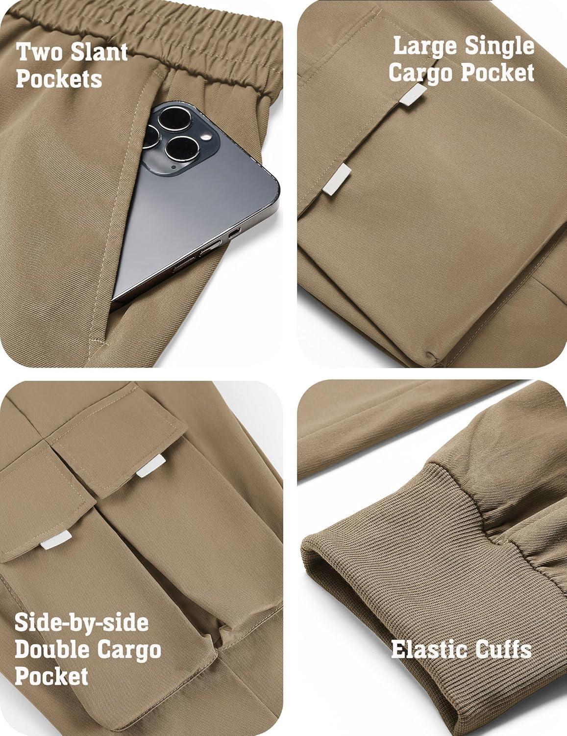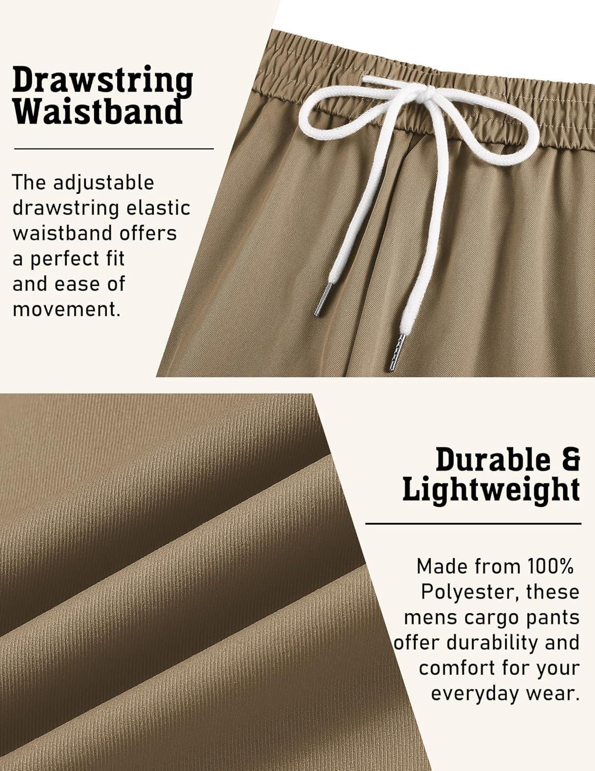 COOFANDY Men’s Cargo Joggers Drawstring Jogger Cargo Pants Fashion Tapered Pants with Multi Pockets(Khaki)