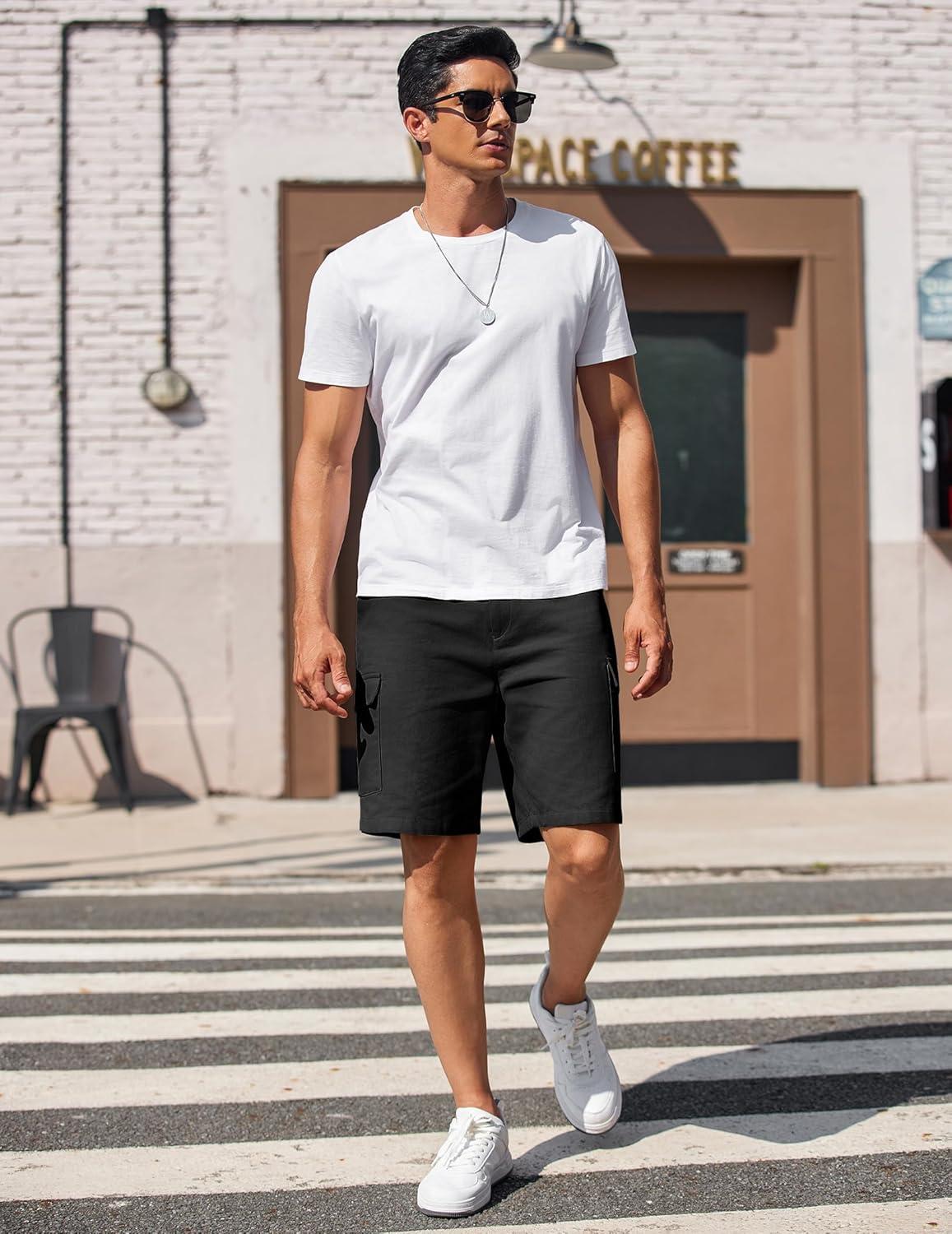 COOFANDY Men’s Cargo Shorts 9″ Relaxed Fit Casual Shorts Internal Drawstring Outdoor Hiking Shorts with Multi Pockets(Black)