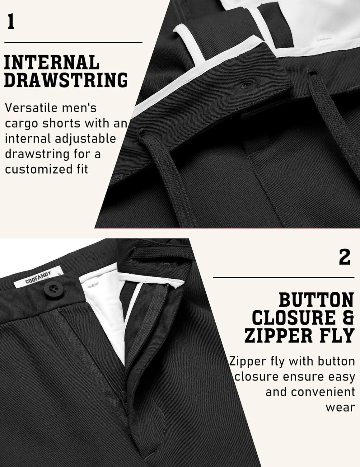 COOFANDY Men's Cargo Shorts 9" Relaxed Fit Casual Shorts Internal Drawstring Outdoor Hiking Shorts with Multi Pockets(Black)