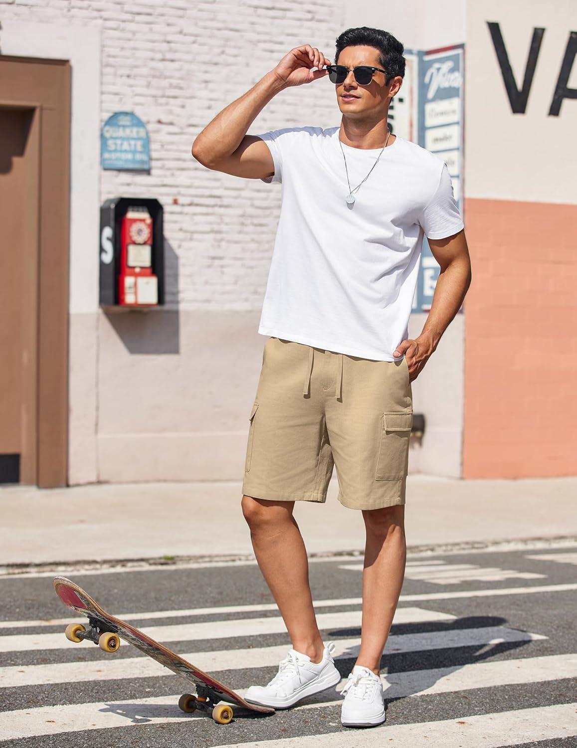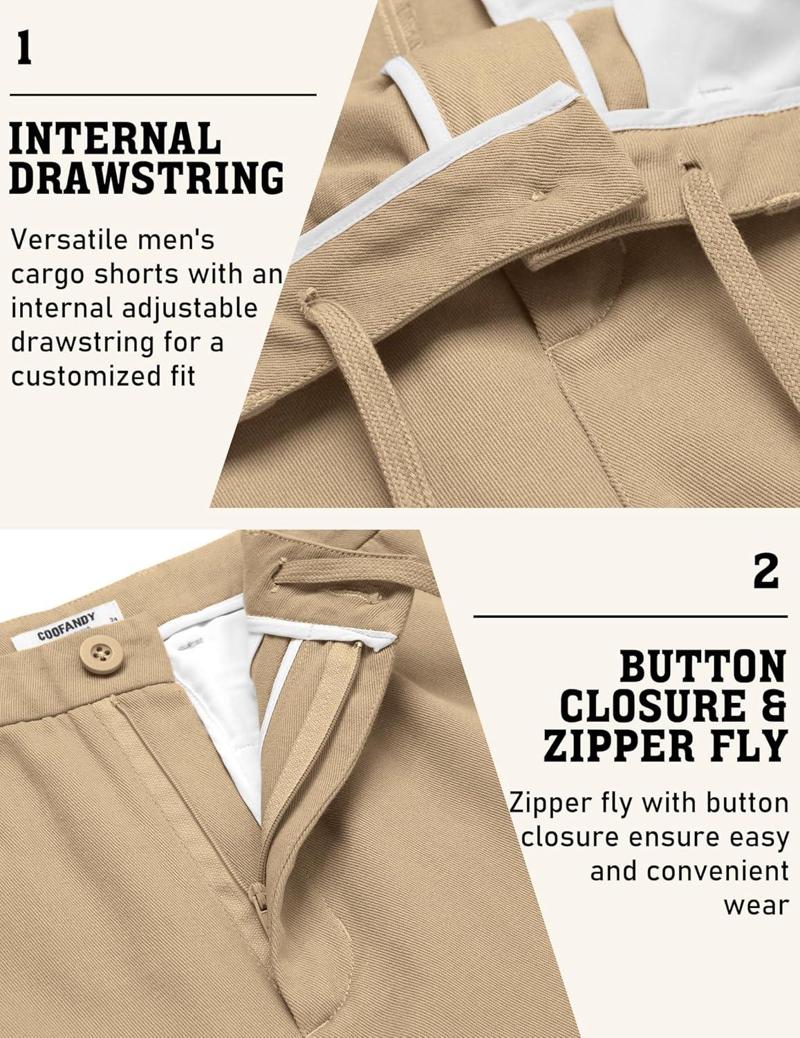 COOFANDY Men's Cargo Shorts 9" Relaxed Fit Casual Shorts Internal Drawstring Outdoor Hiking Shorts with Multi Pockets(Khaki)