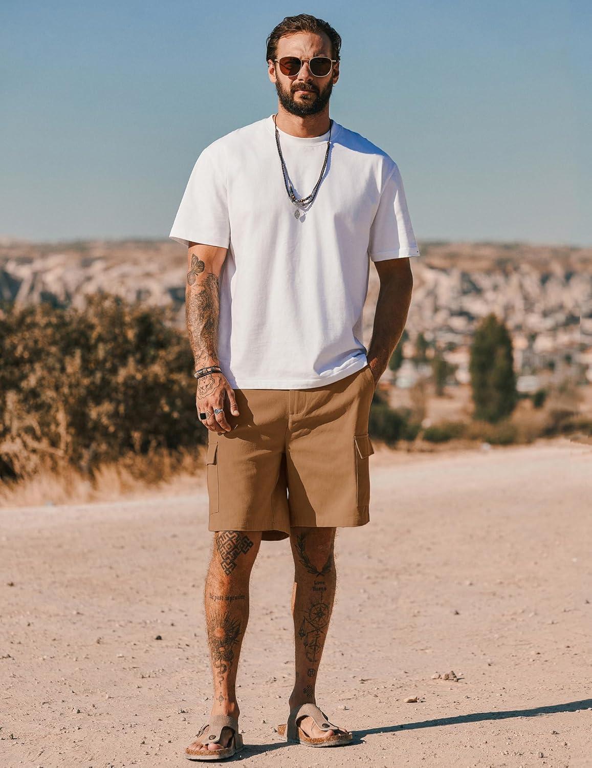 COOFANDY Men's Cargo Shorts 9" Relaxed Fit Casual Shorts Internal Drawstring Outdoor Hiking Shorts with Multi Pockets(Light Brown)