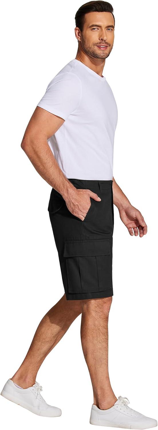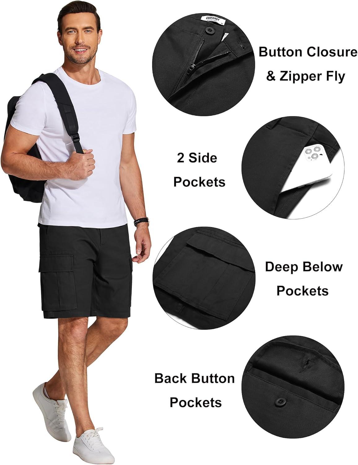COOFANDY Men's Cargo Shorts Loose Fit Casual Cotton Work Shorts Outdoor Hiking Pants with Multi Pockets(Black)