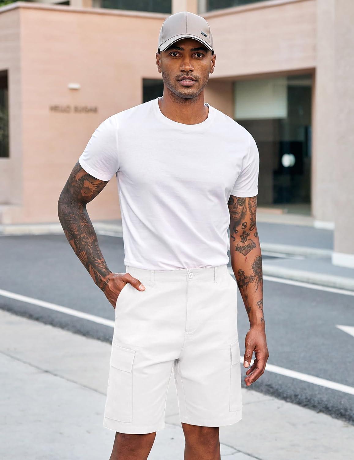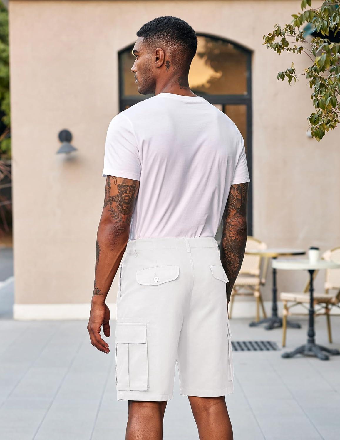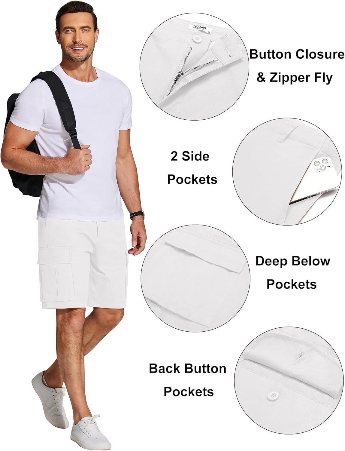 COOFANDY Men's Cargo Shorts Loose Fit Casual Cotton Work Shorts Outdoor Hiking Pants with Multi Pockets(White)