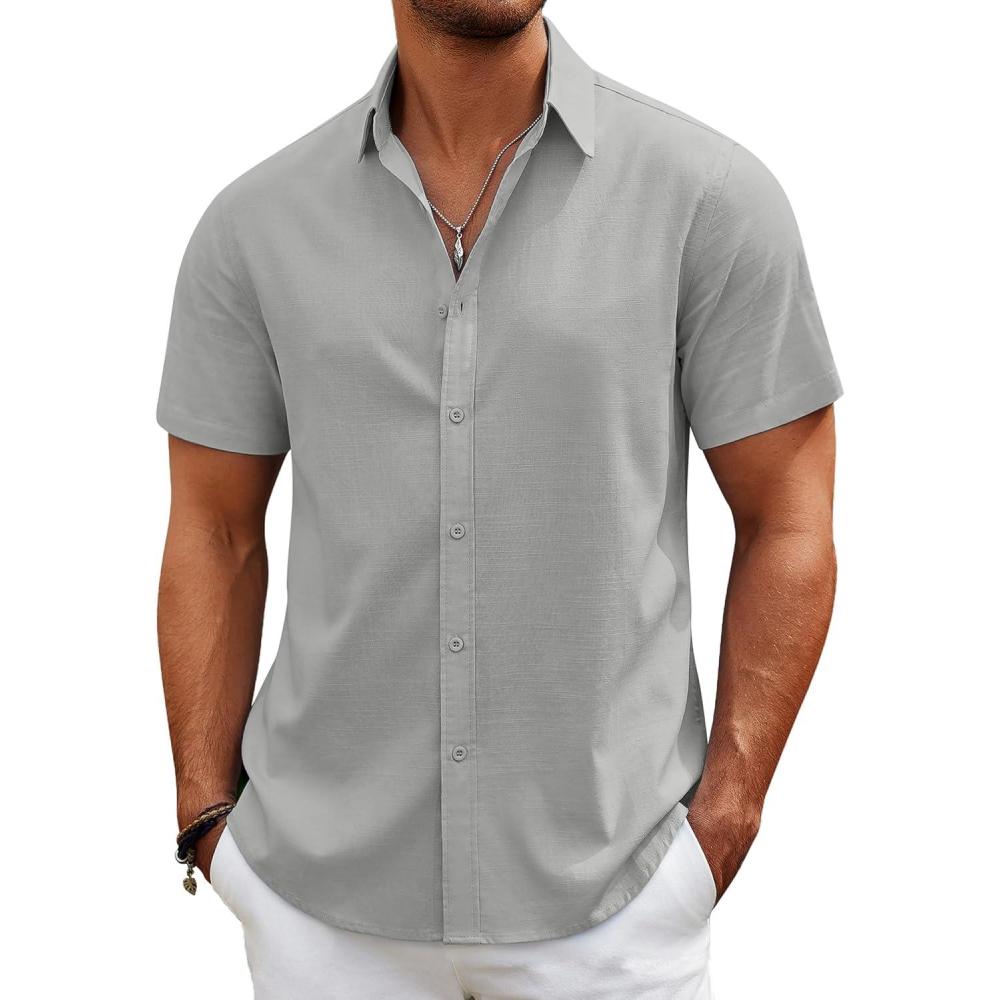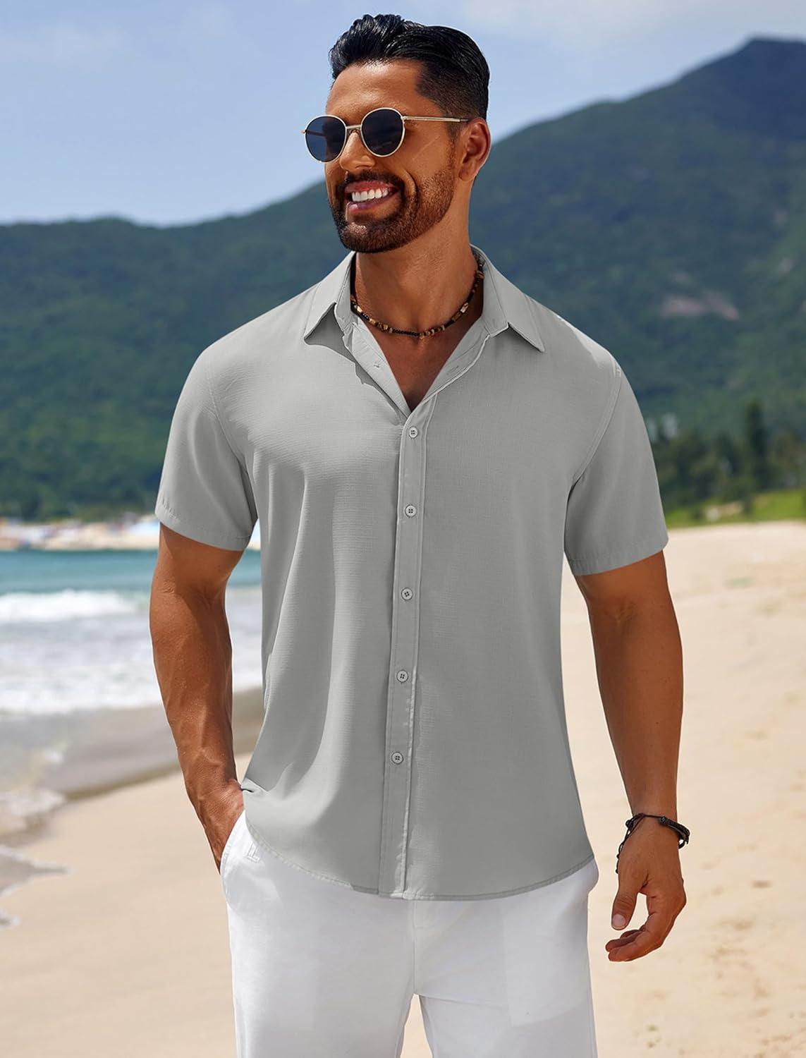 COOFANDY Mens Casual Beach Shirts Short Sleeve Button Down Shirts Summer Vacation Untucked Dress Shirts(Light Gray)