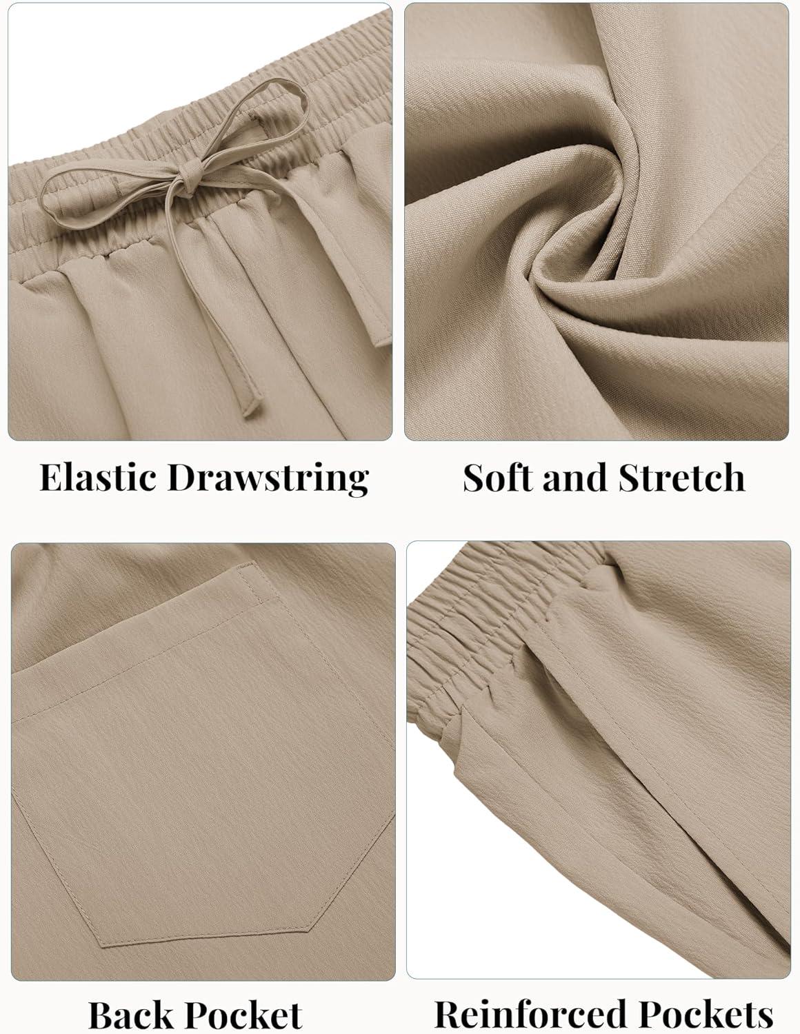 COOFANDY Mens Casual Beach Shorts Summer Elastic Waist Shorts Lightweight Drawstring Golf Shorts(Dark Khaki)
