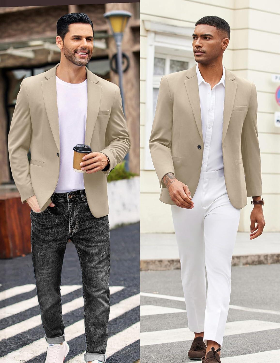 COOFANDY Men’s Casual Blazer Regular Fit Lightweight Two Button Sport Coat Suit Jacket(Light Khaki)