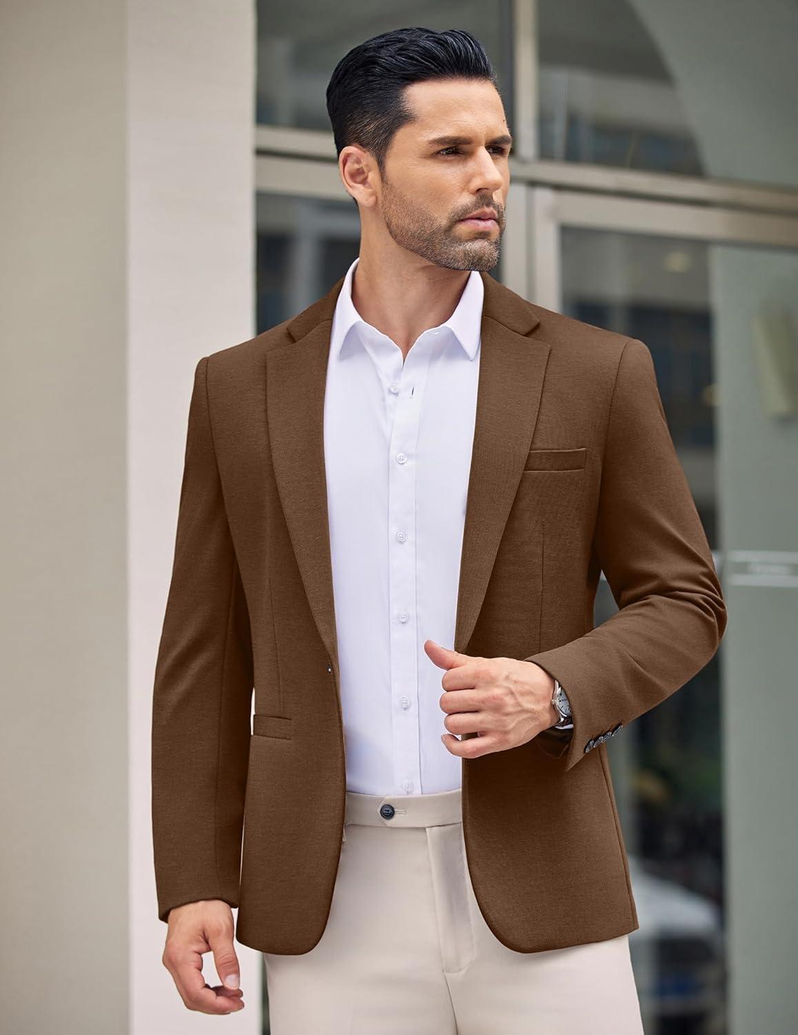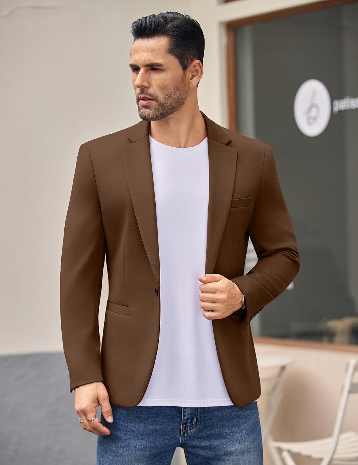Don’t miss out on our limited-time offer: buy COOFANDY Men’s Casual Blazer Jacket One Button Suit Jackets Lightweight Knit Sport Coat(Brown), get {accessory} free!