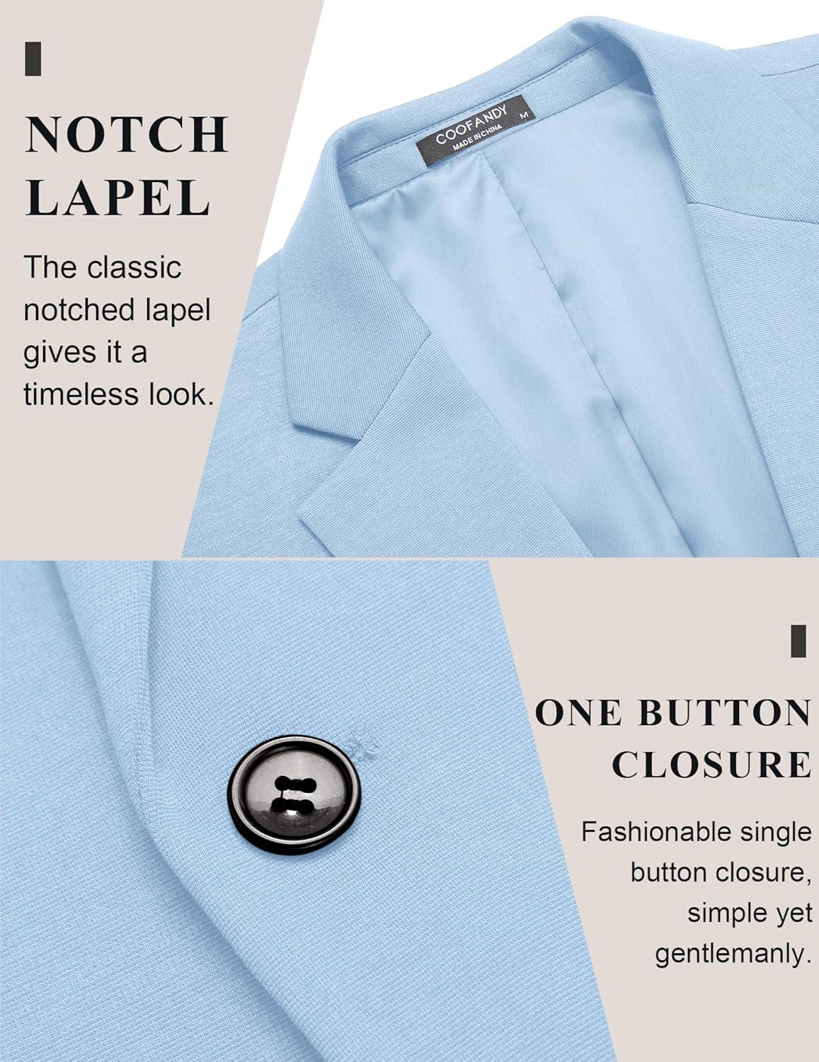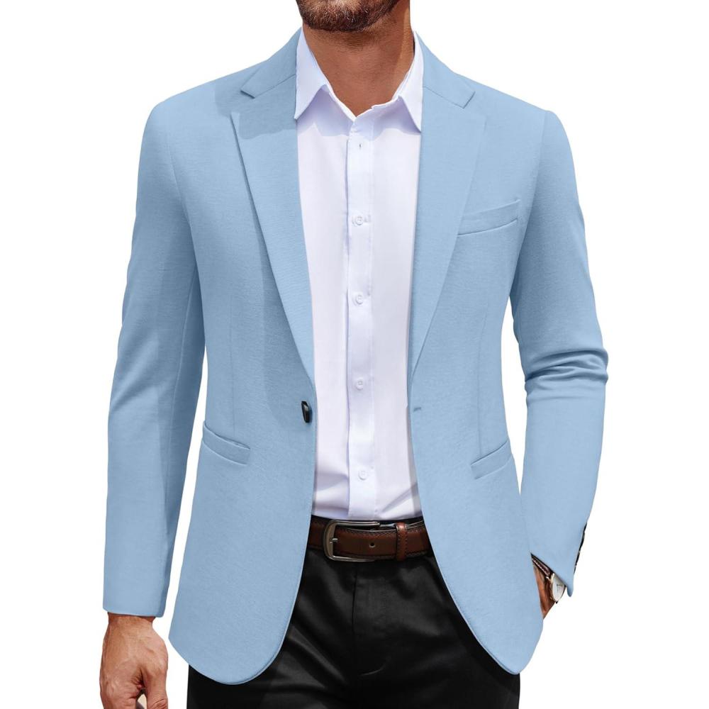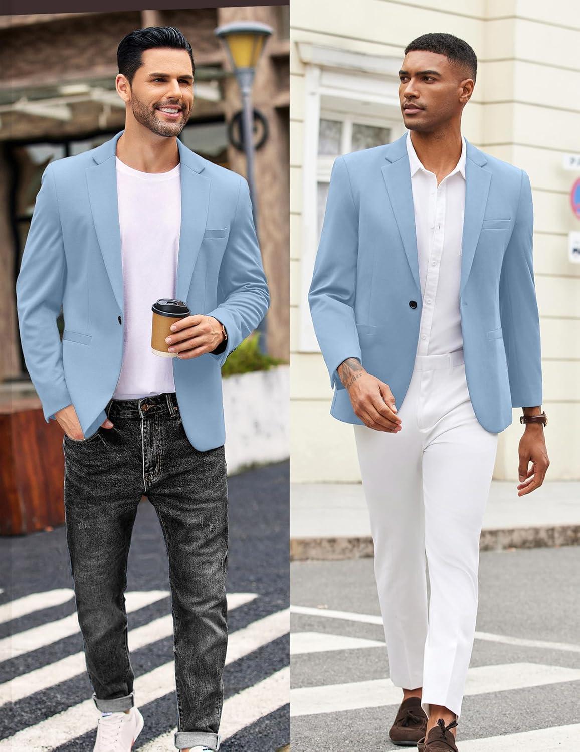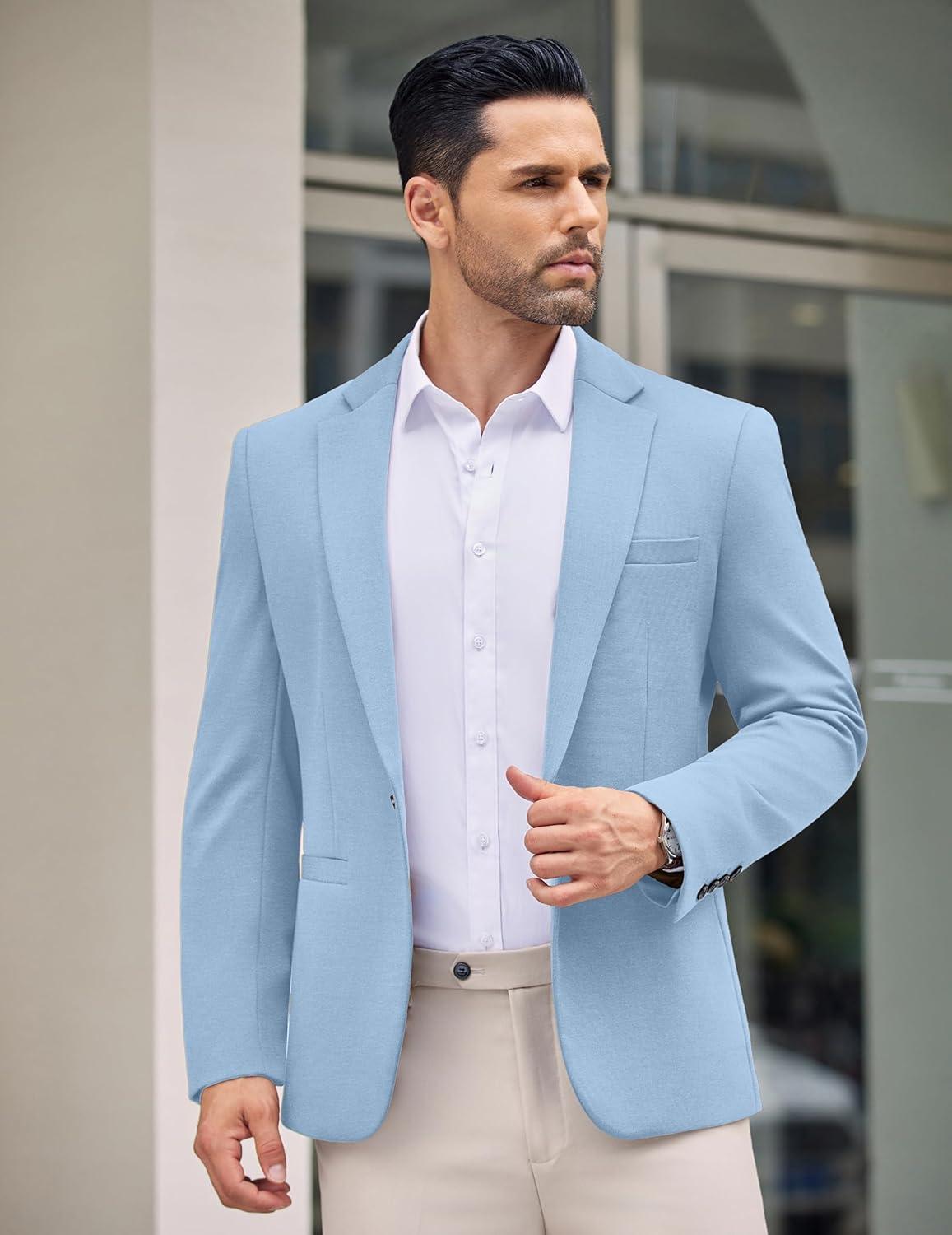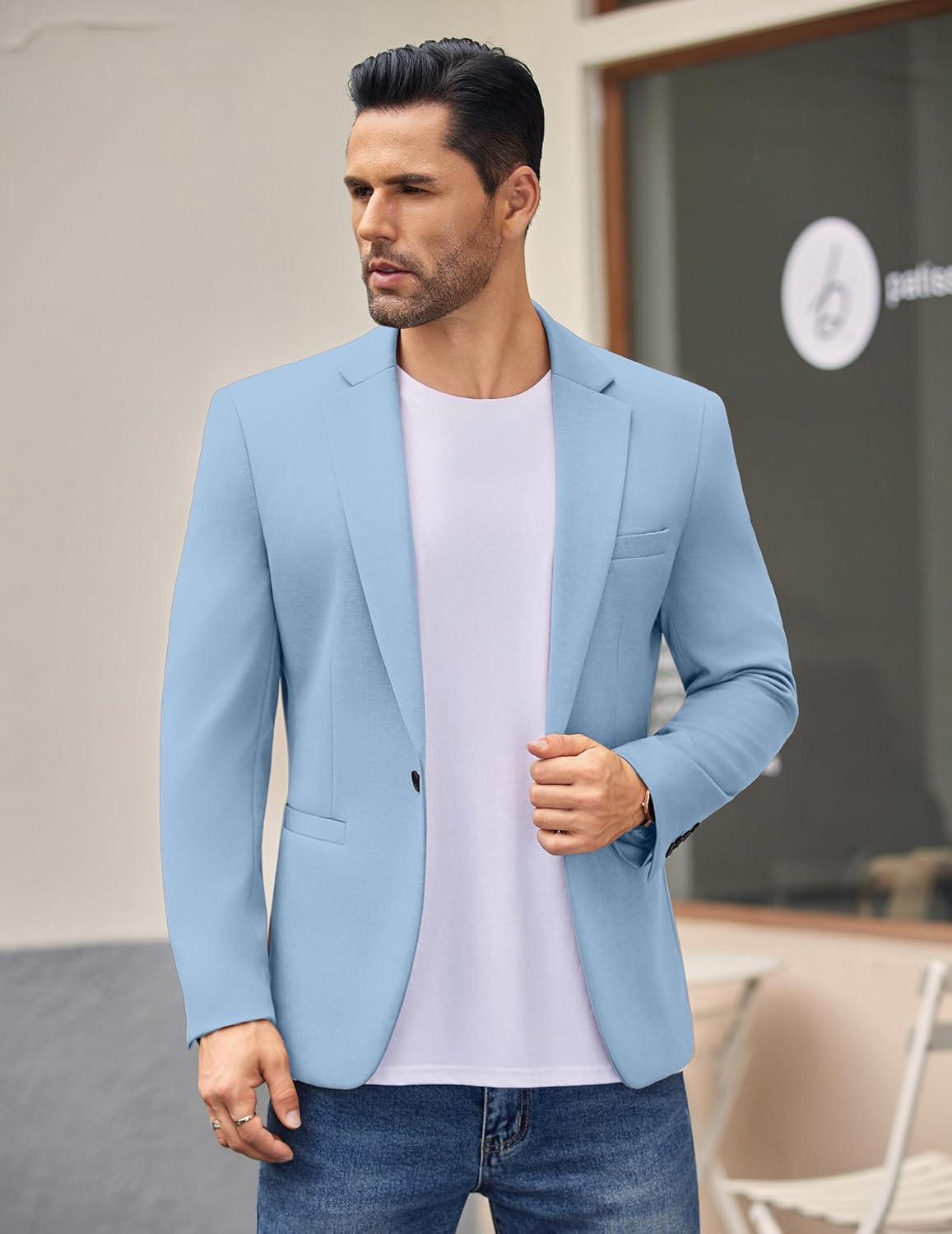 COOFANDY Men's Casual Blazer Jacket One Button Suit Jackets Lightweight Knit Sport Coat(Light Blue)