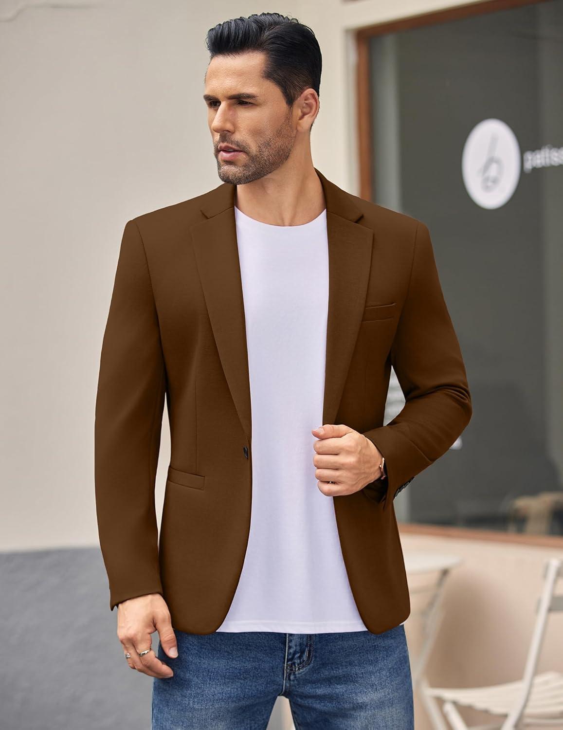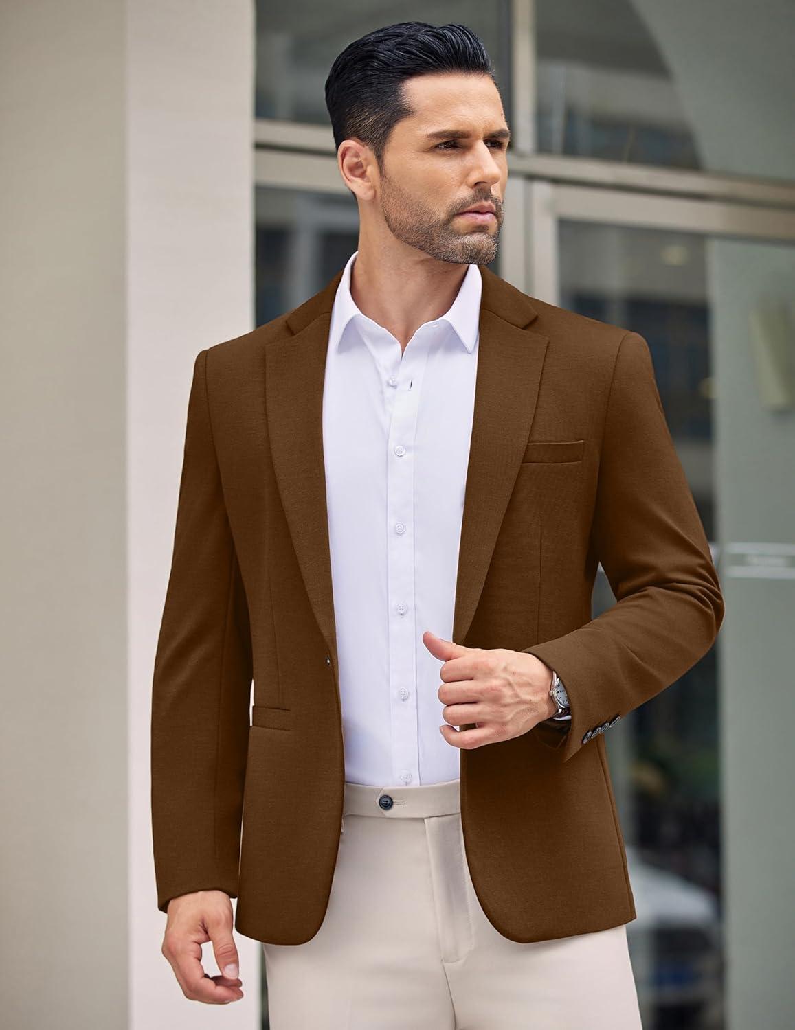 COOFANDY Men’s Casual Blazer Jacket One Button Suit Jackets Lightweight Knit Sport Coat(Light Brown)