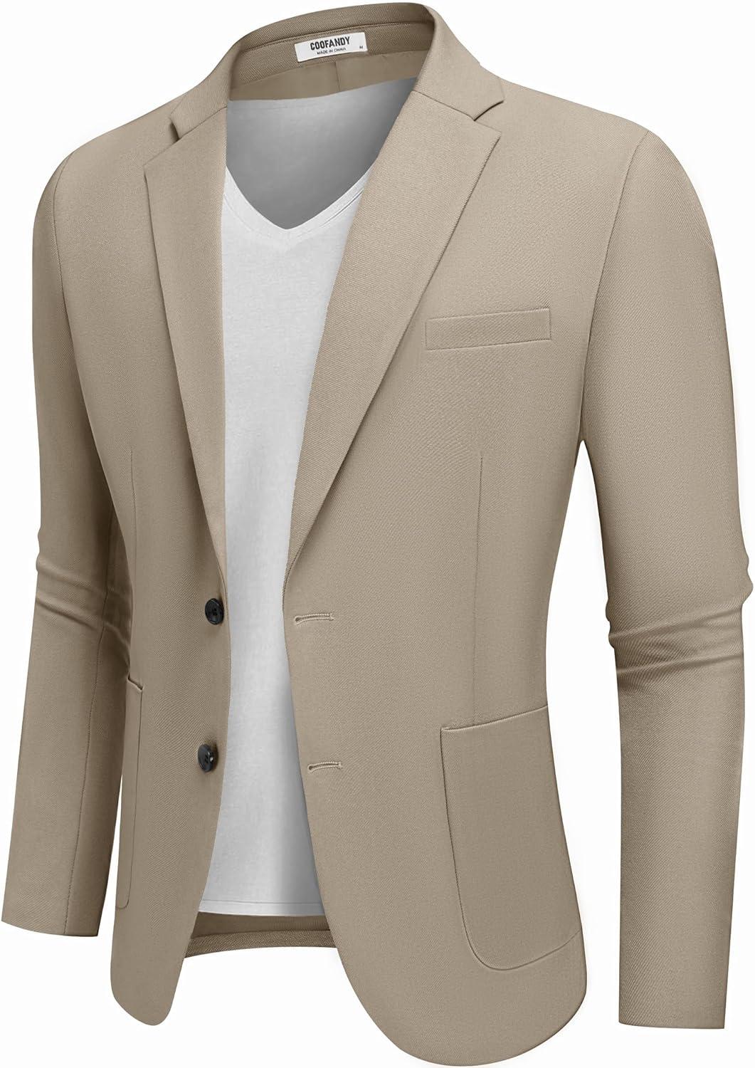 COOFANDY Men's Casual Blazer Jacket Two Button Suit Jackets Lightweight Knit Sport Coat(Khaki)