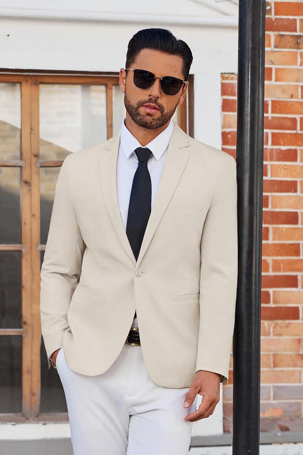 COOFANDY Men’s Casual Blazer Lightweight Sport Coat One Button Suit Jacket(Beige)