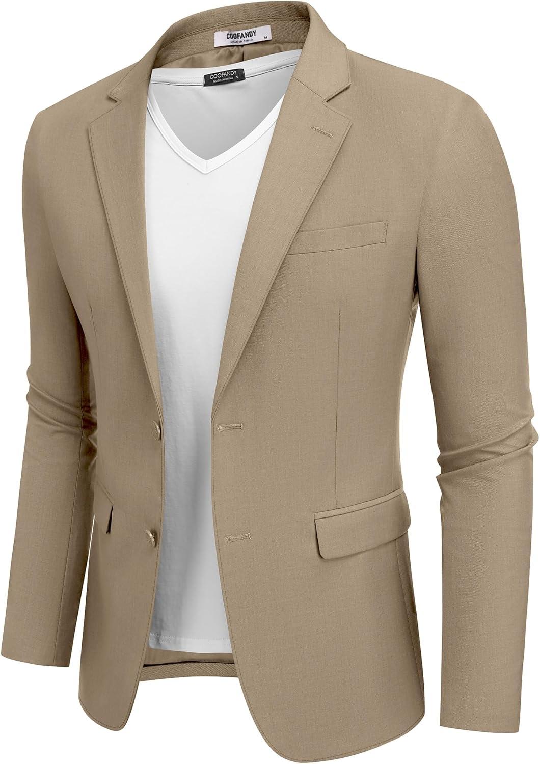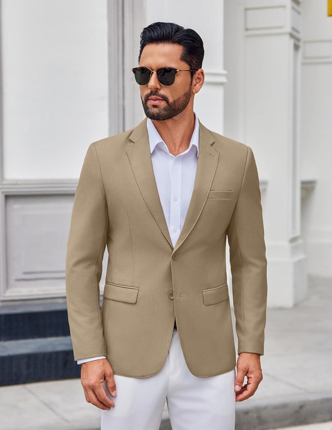 COOFANDY Men’s Casual Blazer Lightweight Sport Coats Two Buttons Slim Fit Suit Jacket for Business Wedding Dress(Khaki)