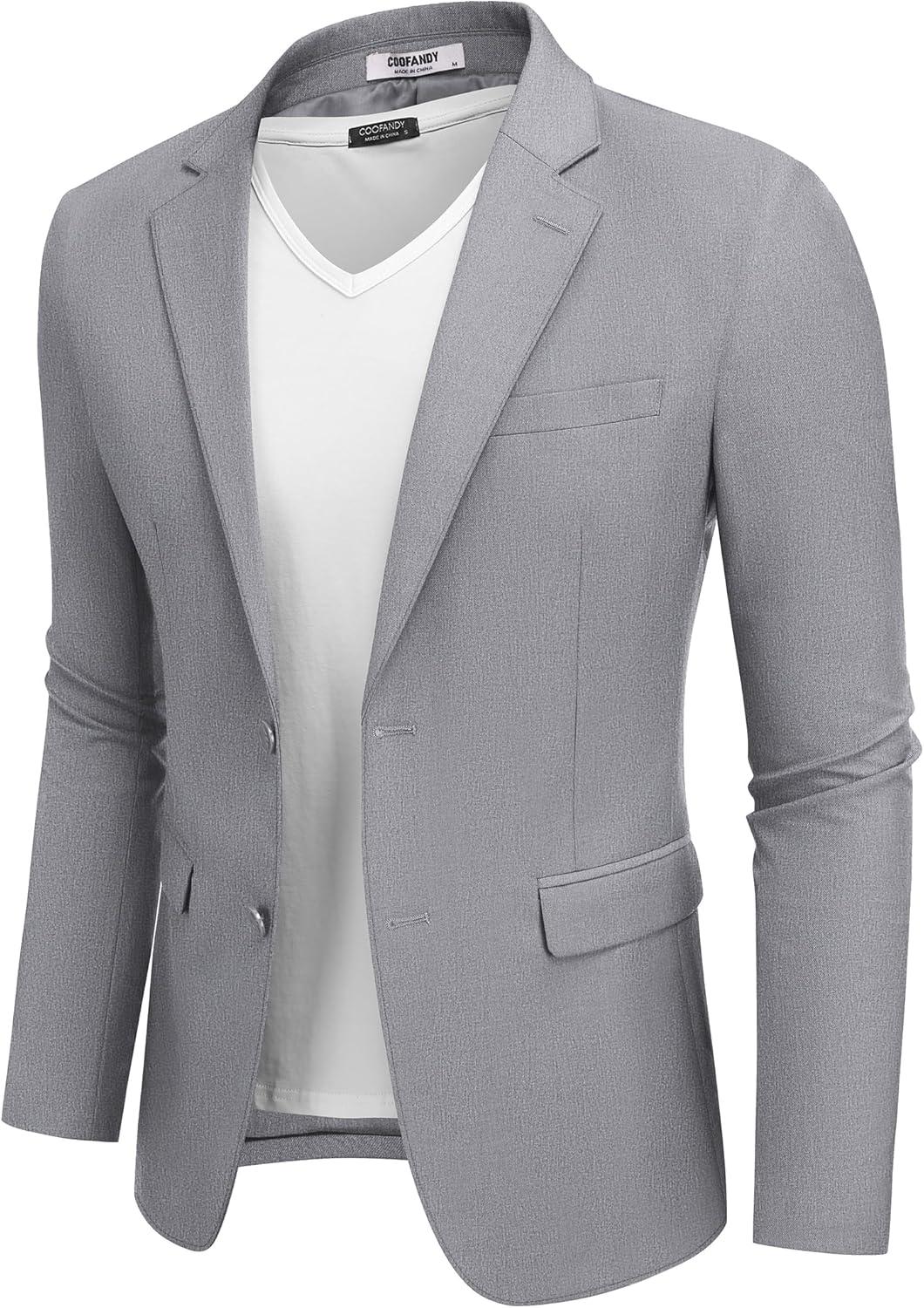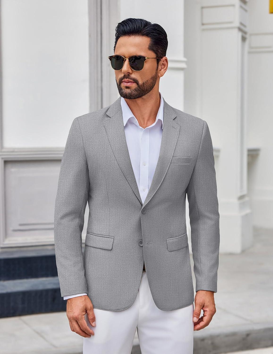COOFANDY Men's Casual Blazer Lightweight Sport Coats Two Buttons Slim Fit Suit Jacket for Business Wedding Dress(Light Grey)