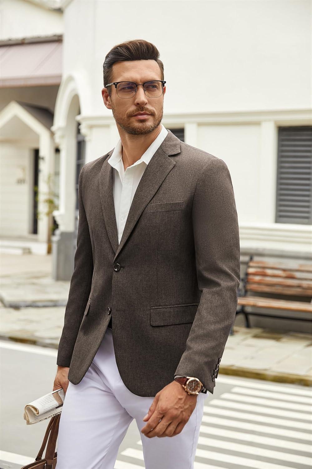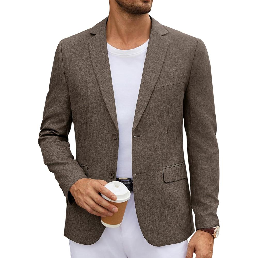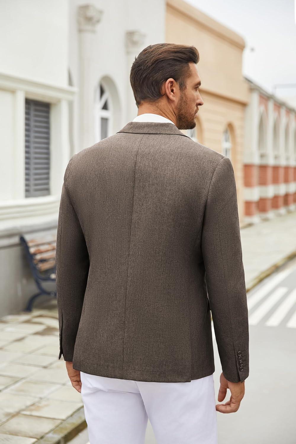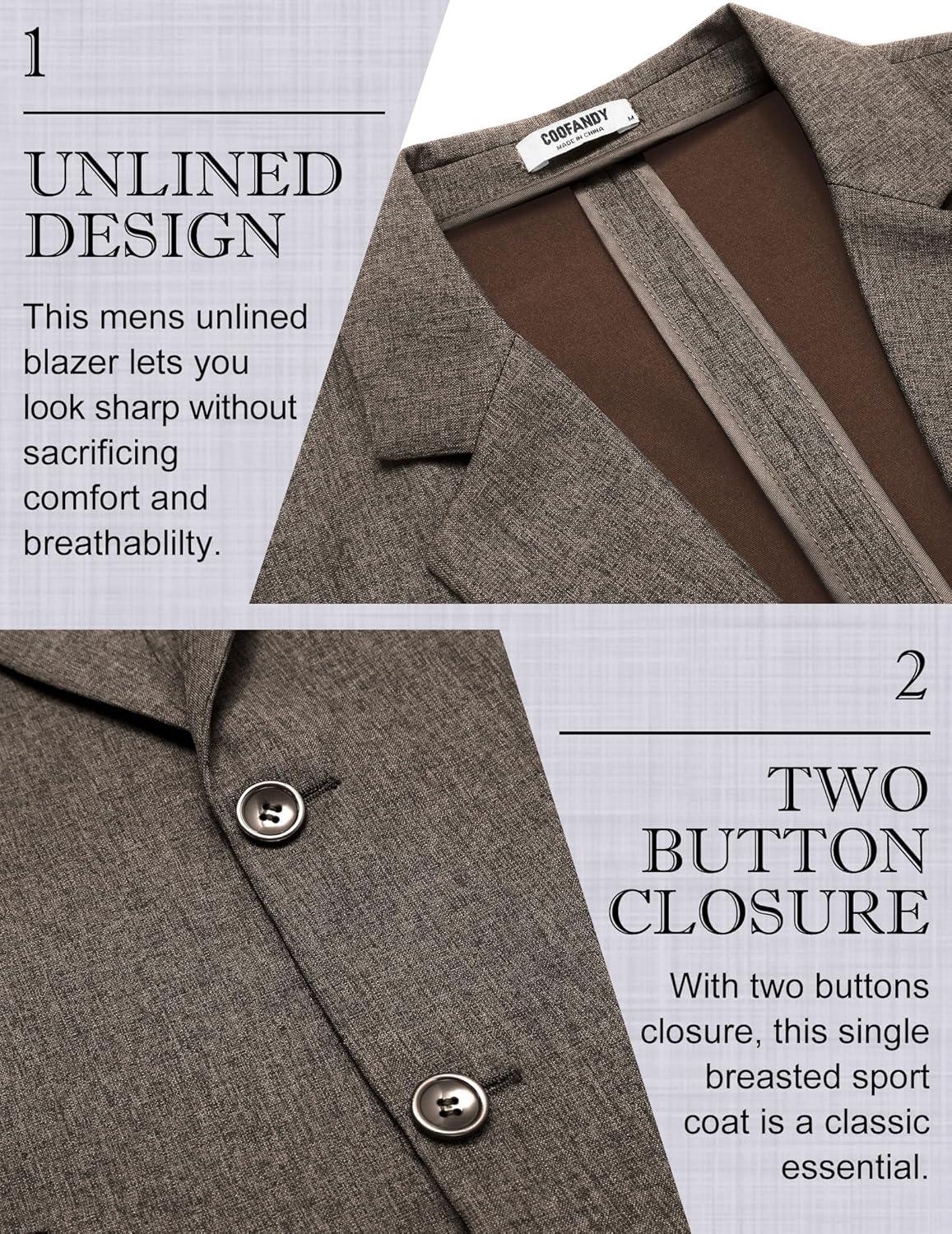 COOFANDY Men’s Casual Blazer Lightweight Unlined Sport Coat Regular Fit Two Button Suit Jacket(Brown)