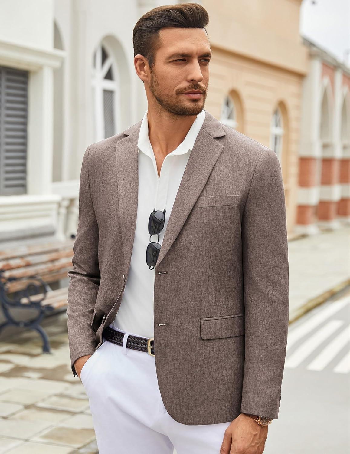 COOFANDY Men’s Casual Blazer Lightweight Unlined Sport Coat Regular Fit Two Button Suit Jacket(Light Khaki)