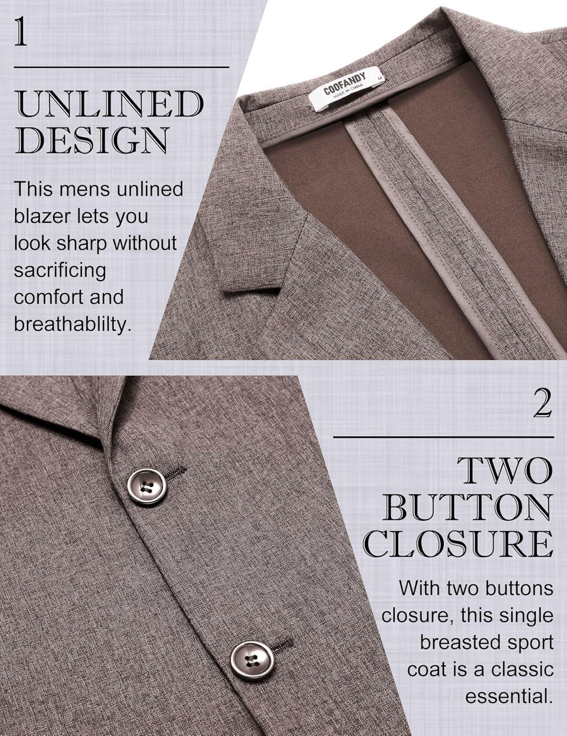 COOFANDY Men’s Casual Blazer Lightweight Unlined Sport Coat Regular Fit Two Button Suit Jacket(Gray)