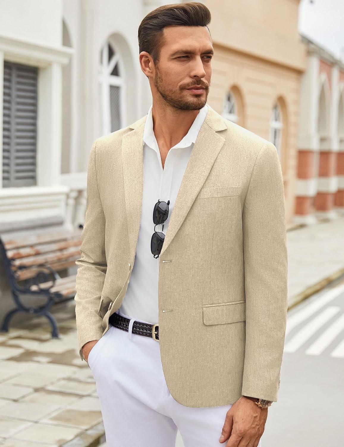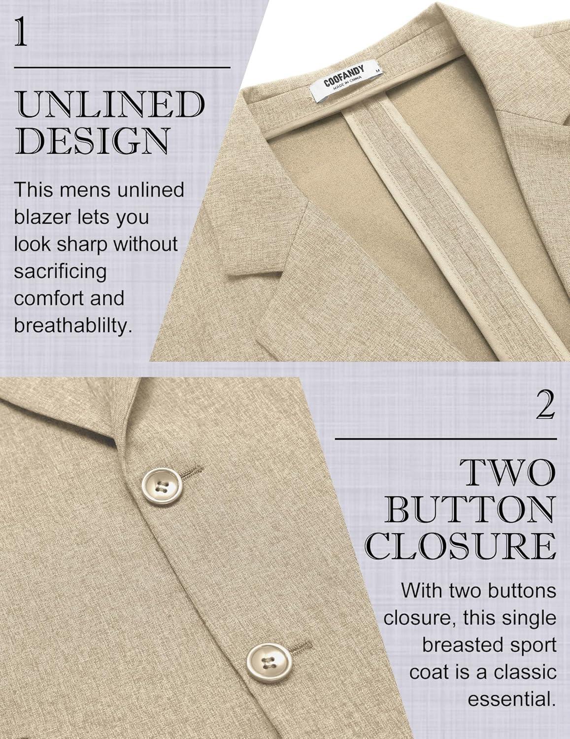 imageCOOFANDY Mens Casual Blazer Lightweight Unlined Sport Coat Regular Fit Two Button Suit JacketLight Khaki