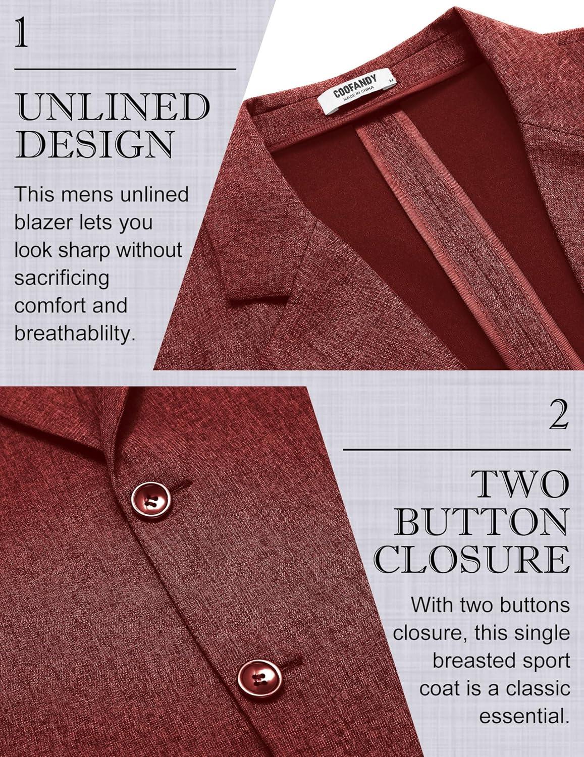 imageCOOFANDY Mens Casual Blazer Lightweight Unlined Sport Coat Regular Fit Two Button Suit JacketRed