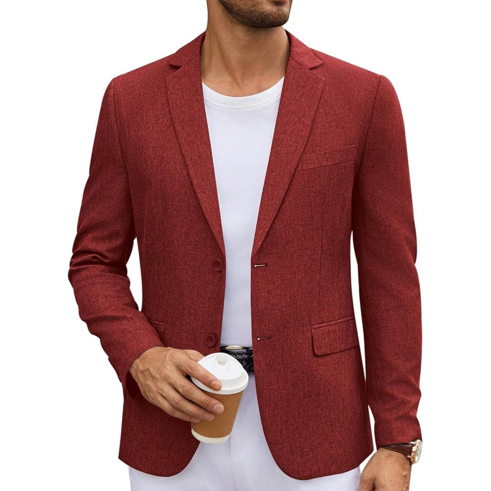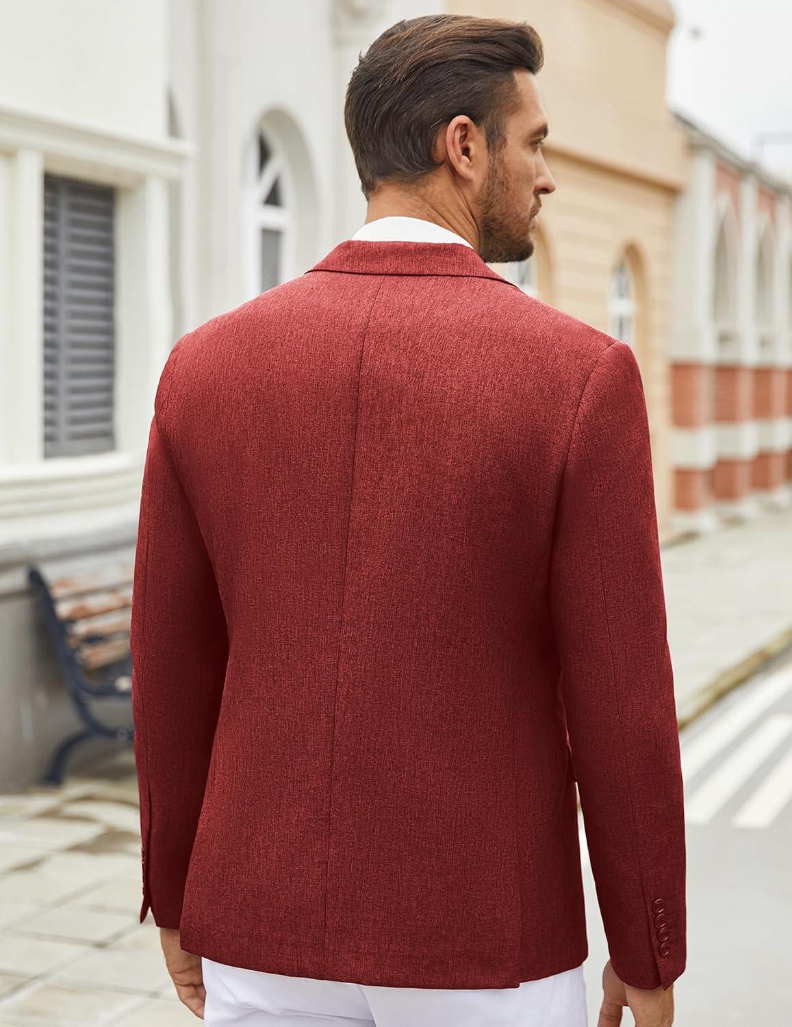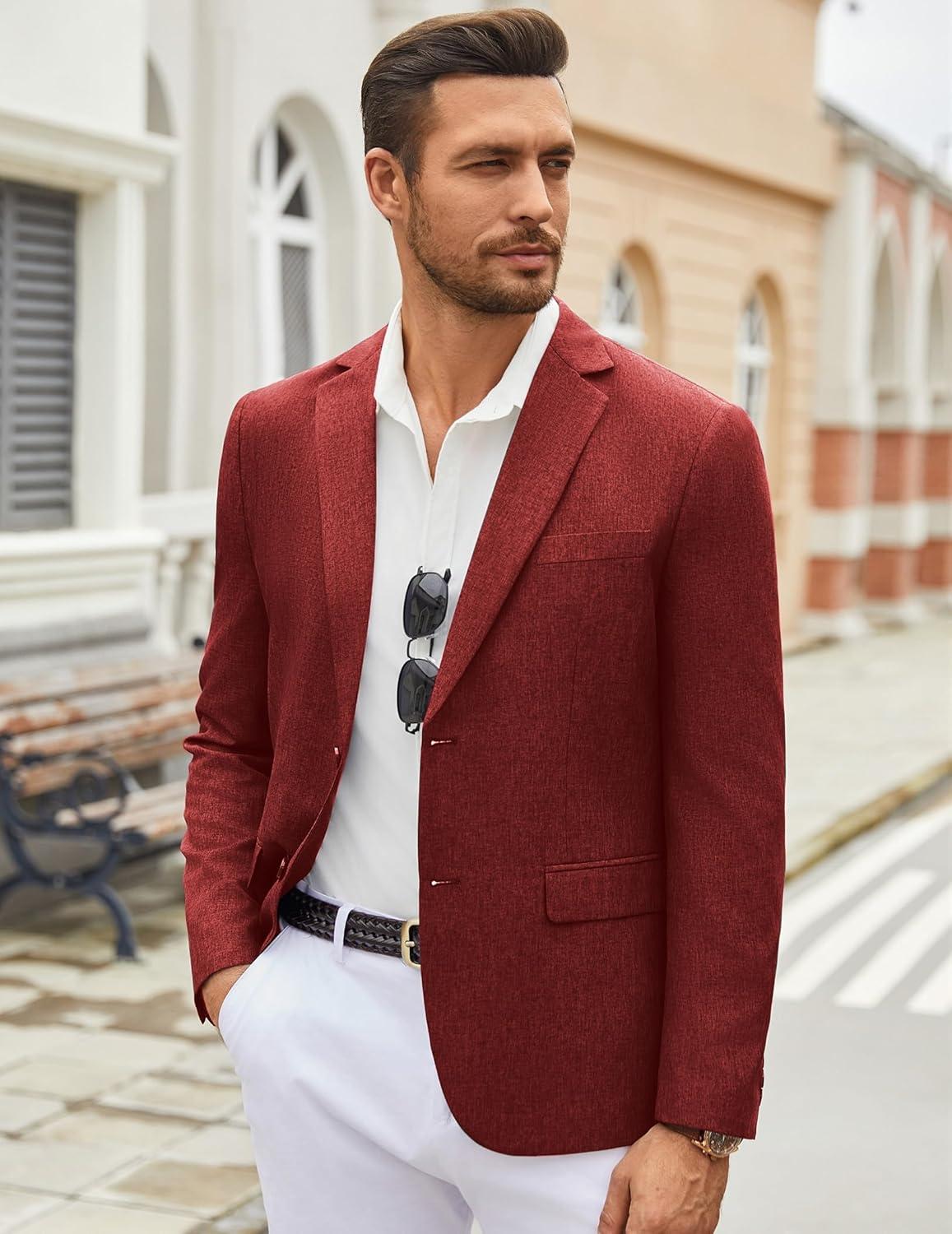 COOFANDY Men’s Casual Blazer Lightweight Unlined Sport Coat Regular Fit Two Button Suit Jacket(Red)