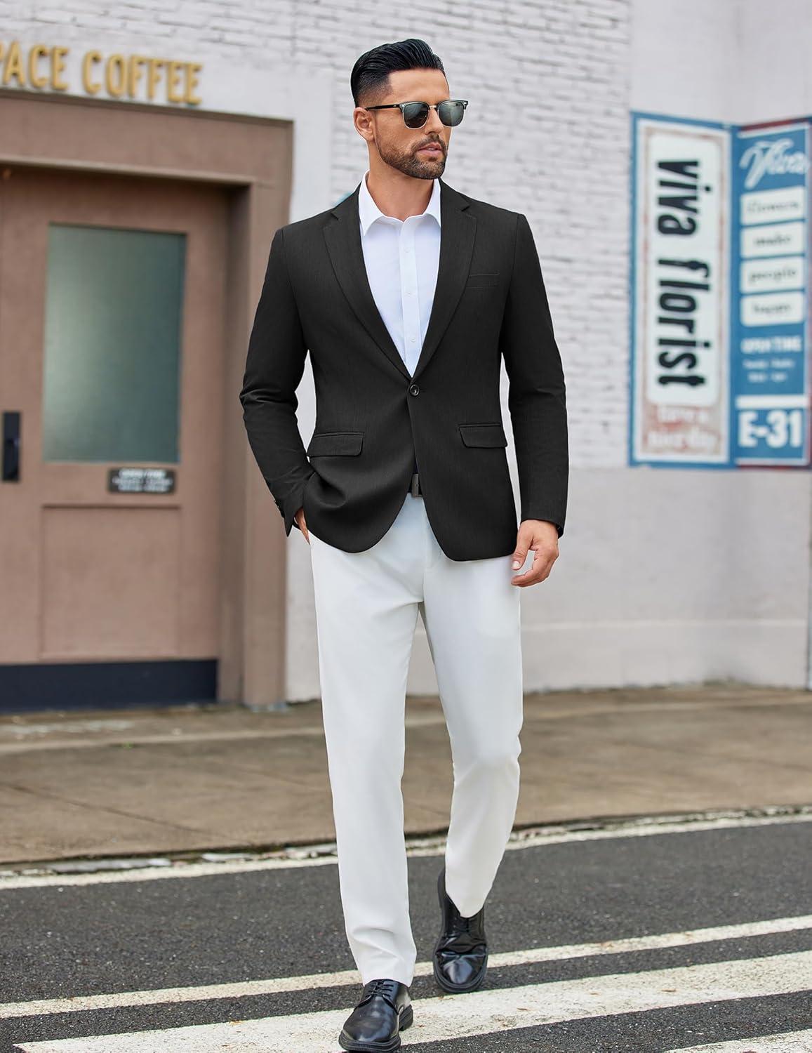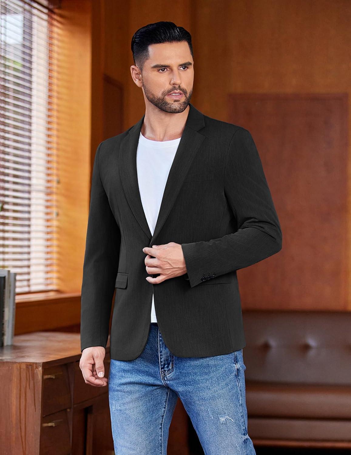 COOFANDY Men's Casual Blazer One Button Sport Coat Lightweight Business Suit Jacket(Black)