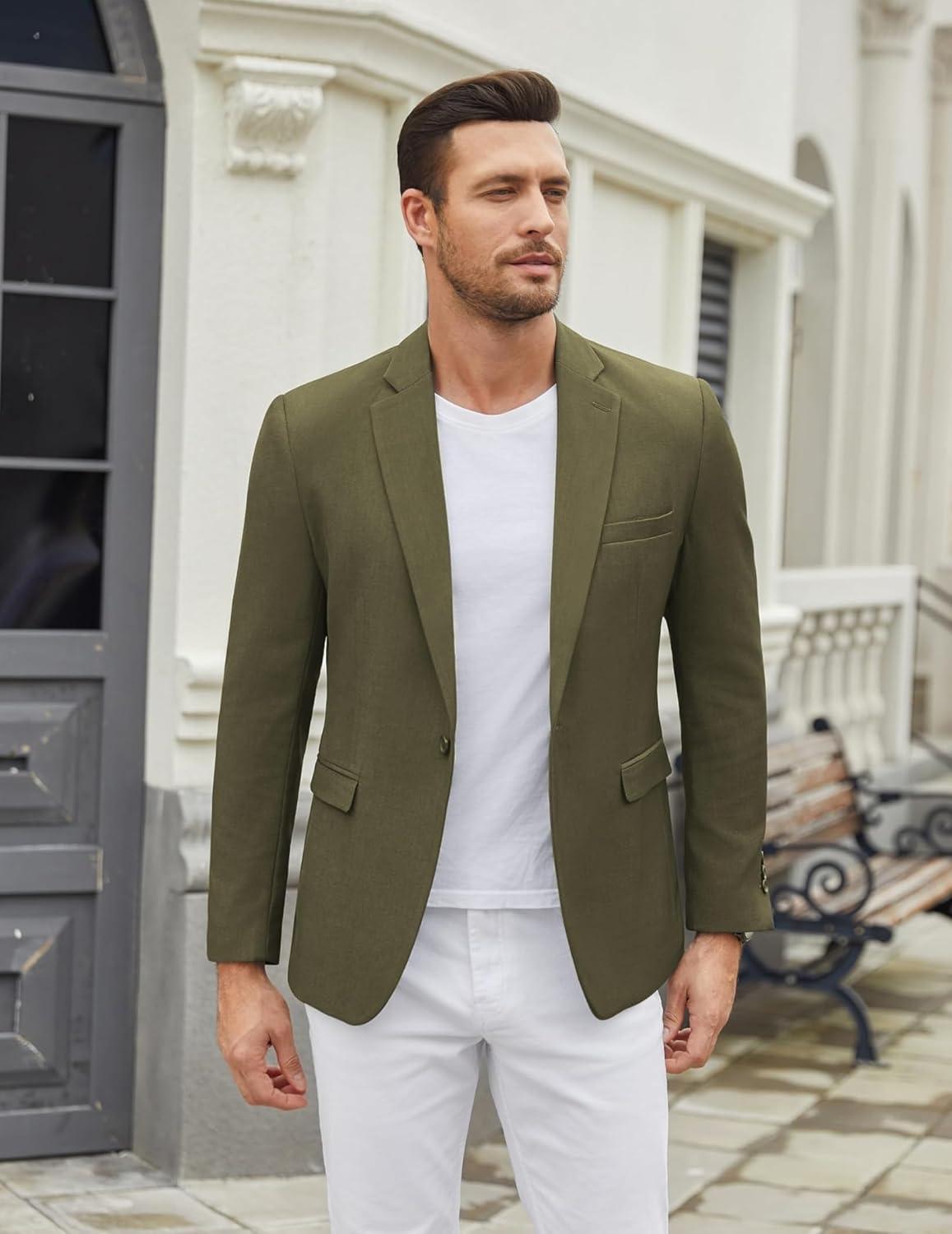 COOFANDY Men’s Casual Blazer One Button Sport Coat Slim Fit Lightweight Suit Blazer Jacket(Army Green)